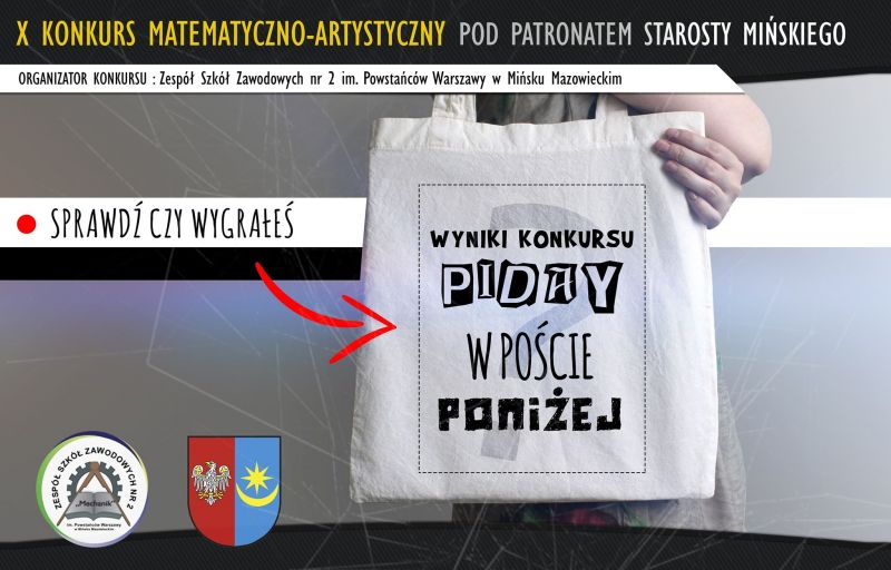 17 marca bieżącego roku w naszej szkole miał się odbyć X finał konkursu matematyczno-artystycznego pod patronatem Starosty Mińskiego ”Zaprojektuj siatkę matematyczną na zakupy”. Z wiadomych przyczyn nie mogliśmy spotkać się w tym dniu. Jest to 10 finał – bardzo ważny dla Nas, z tego względu postanowiliśmy przeczekać sytuację, aby należycie móc świętować dzień Królowej Nauk z Wami. Nikt jednak nie zna dokładnej daty zakończenia zdalnego nauczania. Jednogłośnie organizatorzy postanowili w sposób zdalny przekazać informacje na temat laureatów. Rozdanie nagród i dyplomów odbędzie się jednak w formie tradycyjnej, gdy tylko warunki w szkole na to pozwolą. Dziękujemy wszystkim uczestnikom, nauczycielom, i przyjaciołom konkursu za cierpliwość i zaangażowanie. To było trudne wyzwanie - otrzymaliśmy ponad 80 prac ze szkół z powiatu mińskiego.