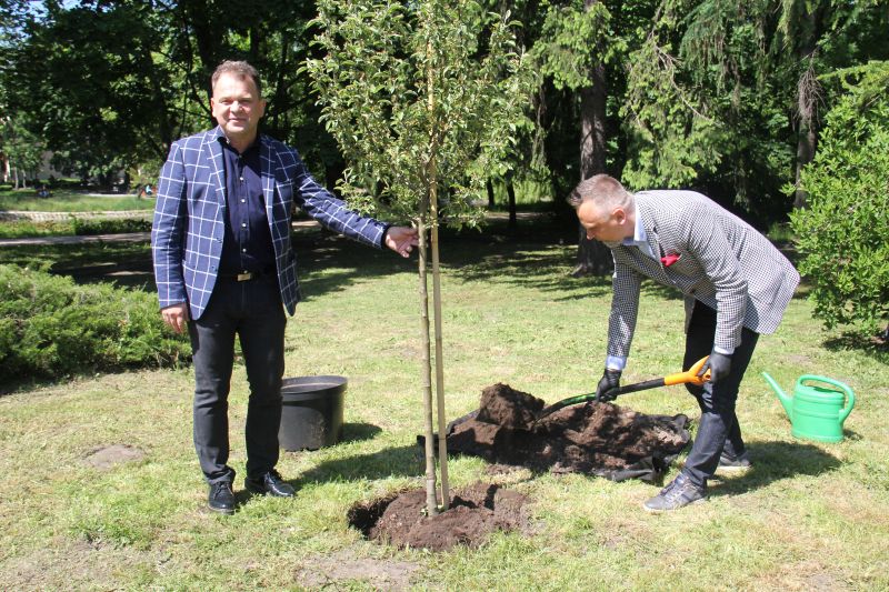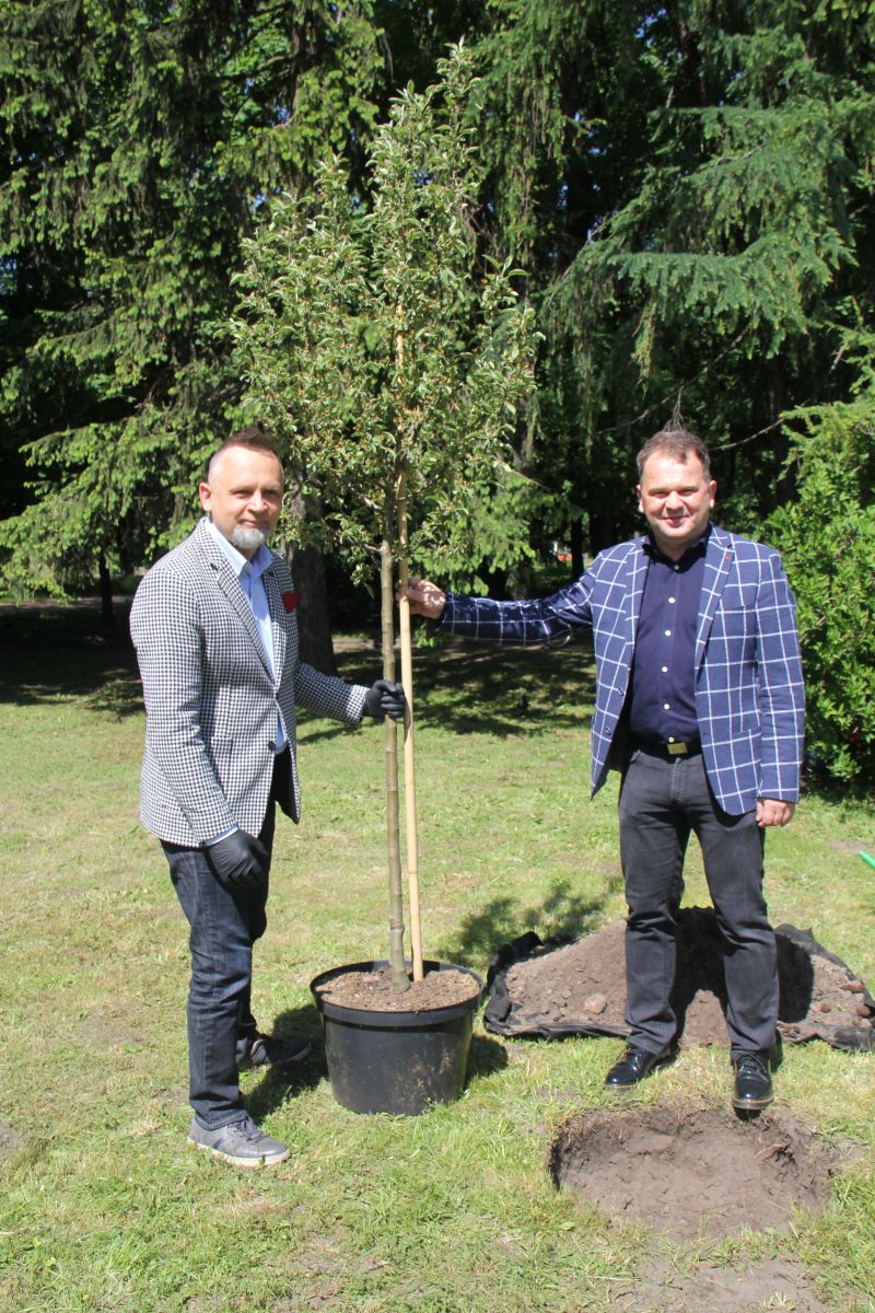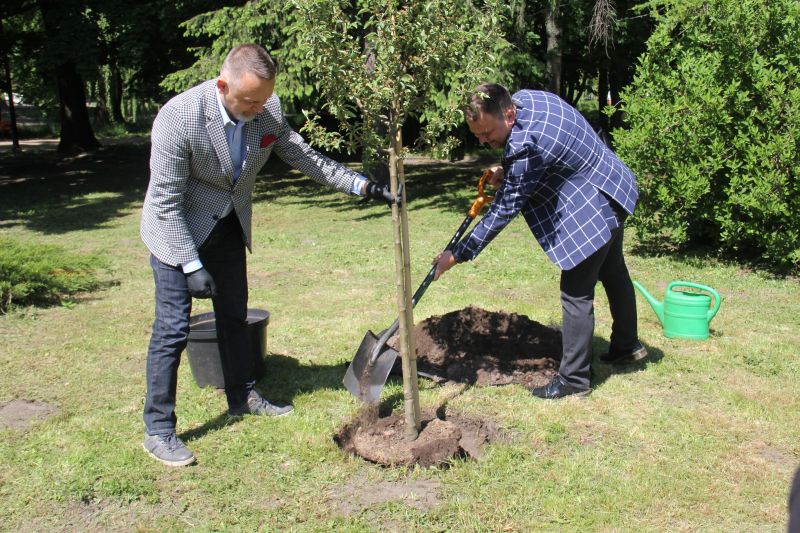 Rok 2020 to 30. rocznica działalności samorządów w Polsce. Zainspirowani warszawskim Sadem Samorządności burmistrz Marcin Jakubowski i przewodniczący Rady Miasta Dariusz Kulma posadzili dziś rajską jabłoń, która swymi żółtymi owocami cieszyć będzie oko przy parku miejskim.