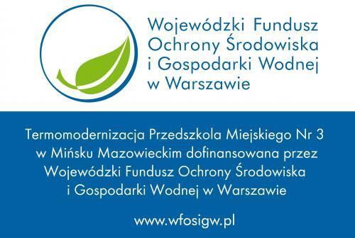 Urząd Miasta informuje, że zakończono termomodernizację Przedszkola Miejskiego Nr 3 przy ul. Konstytucji 3 Maja 10 w Mińsku Mazowieckim. Termomodernizacja dofinansowana została przez Wojewódzki Fundusz Ochrony Środowiska i Gospodarki Wodnej w Warszawie, w formie pożyczki, w kwocie 118.165,89 zł.