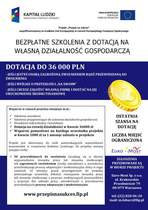 Projekt „Przepis na sukces” współfinansowany ze środków Unii Europejskiej w ramach Europejskiego Funduszu Społecznego BEZPŁATNE SZKOLENIA Z DOTACJĄ NA WŁASNĄ DZIAŁALNOŚĆ GOSPODARCZĄ.
