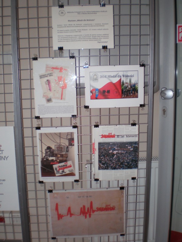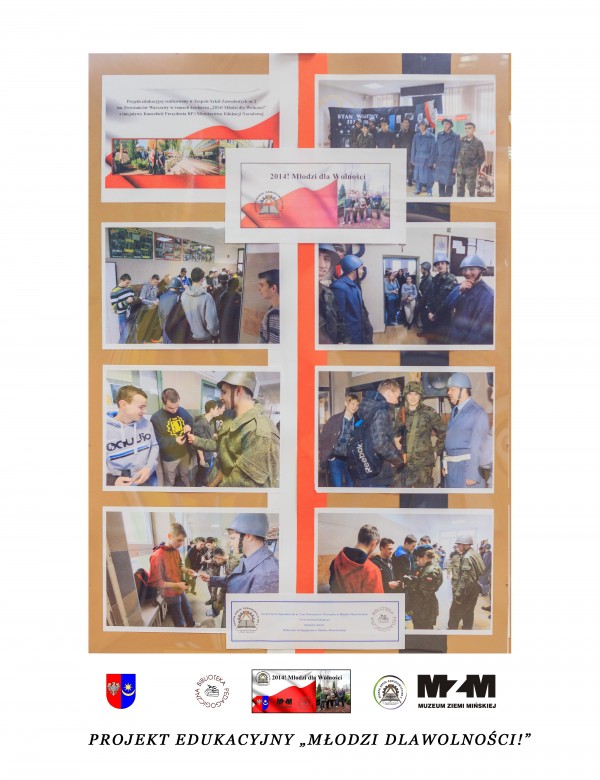 Wystawa Młodzi dla Wolności zorganizowana w marcu i kwietniu w Bibliotece Pedagogicznej, ul. Piłsudskiego 1a (Czytelna - II piętro), jest przedsięwzięciem w ramach  Konkursu "2014! Młodzi dla Wolności"  ogłoszonego  z inicjatywy Kancelarii Prezydenta RP, Ministerstwa Edukacji Narodowej i Ośrodka Rozwoju Edukacji, który  jest częścią obchodów  Święta Wolności – 25. rocznicy wolnych wyborów do Sejmu i Senatu 4 czerwca 1989 roku. Na wystawie znalazły się  publikacje, plakaty, filmy i działania konkursowe z   projektu edukacyjnego realizowanego przez Zespół Szkół Zawodowych nr 2 im. Powstańców Warszawy w Mińsku Mazowieckim. Działania te  mają za zadanie przypomnieć wydarzenia i przybliżyć młodzieży  historię najnowszą – wiedzę o czasie przełomu i ostatnim dwudziestopięcioleciu. Projekt wspiera Muzeum Ziemi Mińskiej i Biblioteka Pedagogiczna w Mińsku Mazowieckim. Wystawa wcześniej była prezentowana w Urzędzie Powiatu Mińskiego.