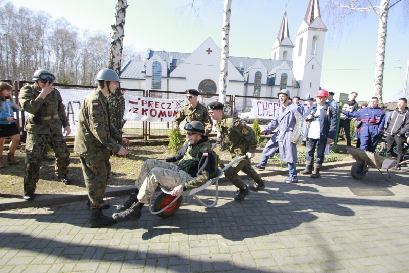 Jak się okazało, to nie pokonanie ogrodzenia – ale nadmuchanie balonika by pękł sprawiało najwięcej trudności uczestnikom konkurencji. Na pierwszym punkcie kontrolnym uczniowie mieli do ułożenia puzzle z wizerunkiem Wałęsy. Drugi punkt wymagał znajomości postaci okresu przemian (do zdęcia należało dopasować kartkę z imieniem i nazwiskiem). Natomiast trzeci punkt kontrolny wymagał znajomości chronologii wydarzeń historycznych. Liczył się również czas.                                 Wszystkie te zmagania śledzili przybyli goście: Starosta Miński Antoni Jan Tarczyński, Wicestarosta Miński Krzysztof Płochocki, Burmistrz miasta Mińsk Mazowiecki Marcin Jakubowski, Dyrektor Muzeum Ziemi Mińskiej Leszek Celej, Kierownik Biblioteki Pedagogicznej Anna Popławska,  Dyrektor Poradni Psychologiczno-Pedagogicznej Edyta Ludwiniak, Wicedyrektor CKUiZ w Mińsku Mazowieckim Kazimierz Skibowski, Wicedyrektor Szkoły Agrotechnicznej w Mińsku Mazowieckim Anna Niewińska, Przewodnicząca Rady Rodziców Małgorzata Kuśmierz, Wiceprzewodniczący Rady Rodziców Stanisław Smater.