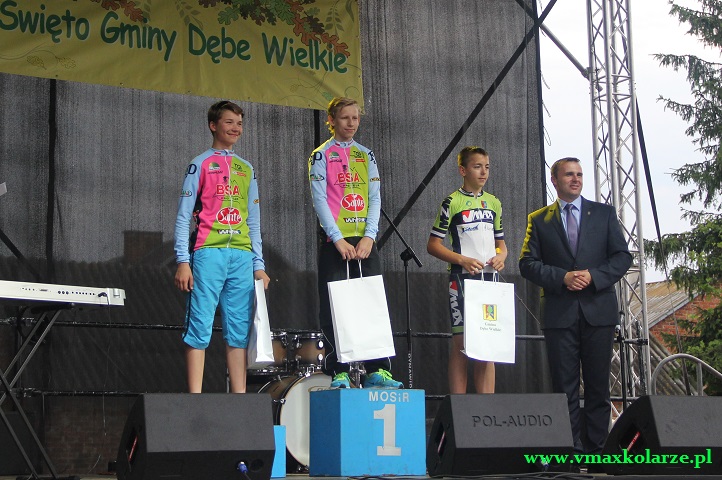 Od 15:30 zaczęły się zmagania najmłodszych kategorii wiekowych. Od samego początku lokalna publiczność liczyłą na dobre występy młodych kolarzy z Dębego Wielkiego i Cyganki - na co dzień zawodników Klubu V-MAX. Najlepiej wśród silnej konkurencji wypadł utalentowany Kuba Soszka, który w kategorii Młodzików zajął 3 miejsce. Wśród Juniorów Młodszych honor V-MAX-u obronił rewelacyjnie jeżdżący w tym sezonie mieszkaniec Cegłowa - Dominik Murasicki zajmując 2 miejsce, natomiast wśród Juniorów wracający do wielkiej formy mieszkaniec Grodziska k. Mrozów - Dominik Jarosz nie dając rywalom żadnych szans i zajął 1 miejsce.