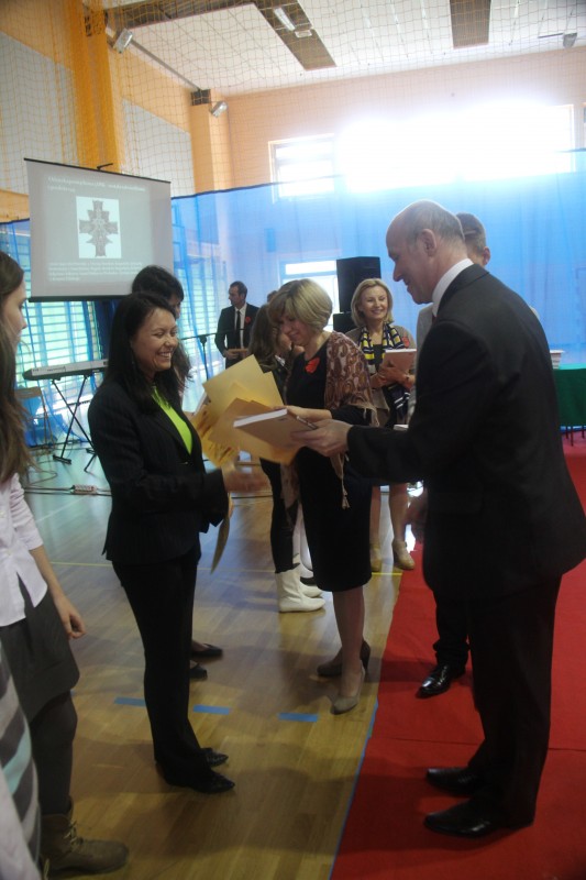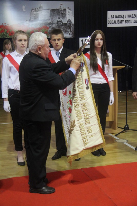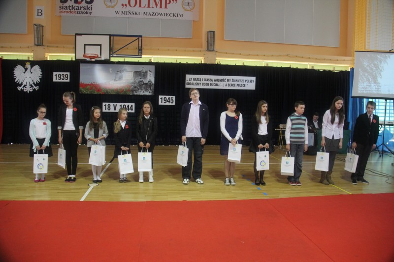 Druga część obchodów miała miejsce w Zespole Szkół Miejskich nr 1. Do zaproszonych gości oraz młodzieży Gimnazjum Miejskiego nr 1 im. Gen. Władysława Andersa swoje słowa skierowali: Starosta Miński, Dyrektor Szkoły oraz mjr Antoni Łapiński – uczestnik walk pod Monte Cassino w 1944 roku. Za upowszechnianie bohaterskich czynów polskiego żołnierza prezes Związku Inwalidów Wojennych Oddziału Mińsk Mazowiecki pan Józef Jedynak odznaczył sztandar  Gimnazjum Miejskiego nr 1 Krzyżem Za Zasługi dla Związku Inwalidów Wojennych.