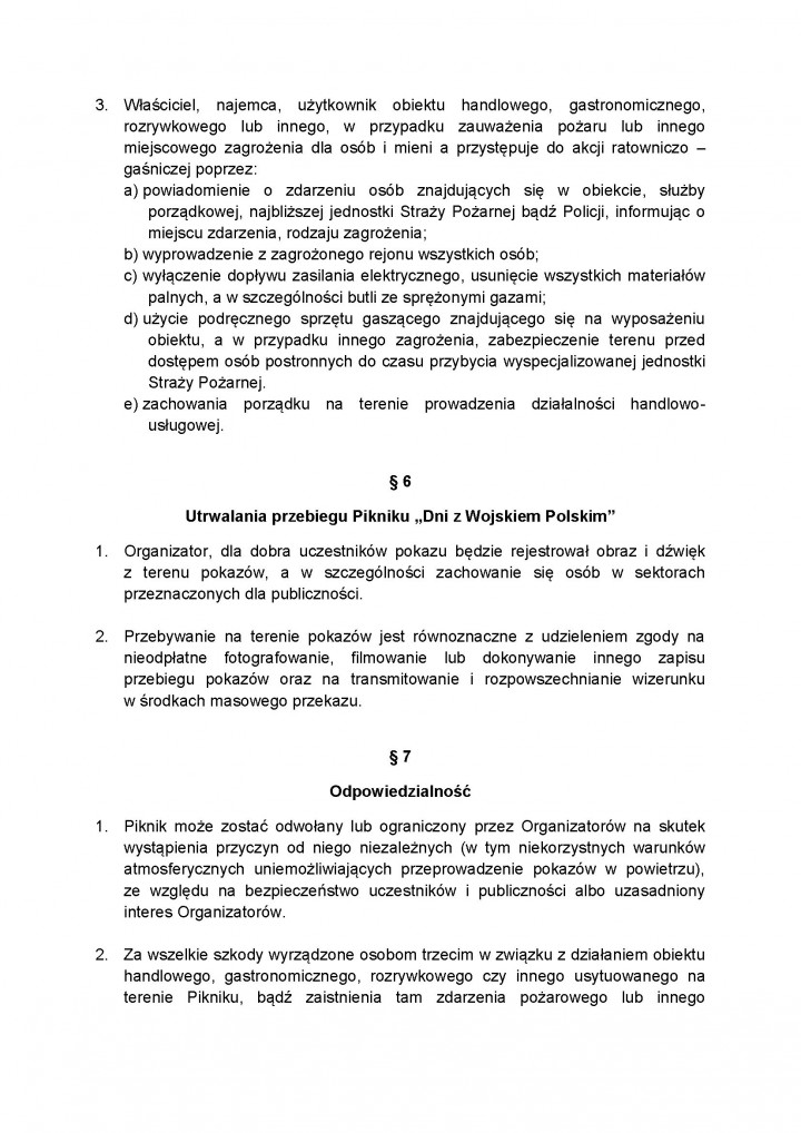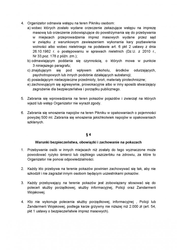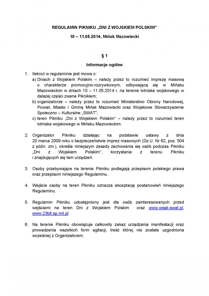 Regulaminy obowiązujące w czasie Dni z Wojskiem Polskim 10 - 11 maja 2014