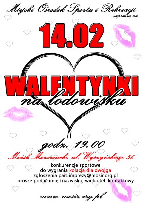 14 lutego o godz. 19.00 na Lodowisku Miejskim przy ul. Wyszyńskiego 56 odbędą się „Walentynki na lodowisku”. W programie przewidziano liczne konkurencje sportowo-rekreacyjne z przymrużeniem oka. Do wygrania gadżety walentynkowe oraz nagroda główna – romantyczna kolacja dla dwojga w restauracji