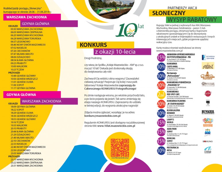 W tegoroczne wakacje po raz dziesiąty na tory wyjechał pociąg „Słoneczny”. Kursuje on codziennie w relacji Warszawa Zachodnia - Gdynia Główna - Warszawa Zachodnia.