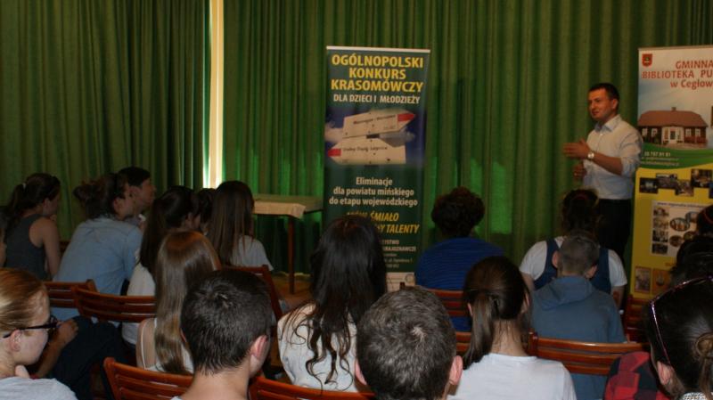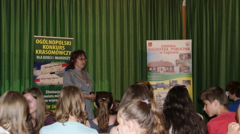 23 maja 2014 r.( piątek) odbyły się dla uczniów warsztaty w formie wyjazdowej – tj. w formie Zlotu Turystycznego Krasomówców na terenie Gminy Cegłów. Uczestnicy Zlotu spotkali się z leśnikiem w rezerwacie Jedlina, a następnie zwiedzili najciekawsze miejsca w Cegłowie. Wsparcia organizacyjnego w tym zakresie udzielili: Wójt Gminy Marcin Uchman przekazując uczestnikom pamiątkowe foldery oraz Dyrektor Gminnej Biblioteki Publicznej w Cegłowie Danuta Grzegorczyk, która z powodzeniem pełniła rolę przewodnika po Cegłowie. Po zwiedzaniu uczestnicy wzięli udział w warsztatach inspirowanych programem wycieczki, a uczennice z Gimnazjum Miejskiego nr 3  swoimi wystąpieniami promowały Konkurs Krasomówczy.  Dla większości uczniów był to pierwszy pobyt w rezerwacie Jedlina i z autentycznym zaciekawieniem odkrywali historię i uroki Cegłowa. W Zlocie wzięli udział uczniowie z Gimnazjum Miejskiego nr 34, Gimnazjum Miejskiego nr 3 Szkoły podstawowej nr 2 oraz zaproszeni goście z Garwolina. Wszyscy uczestnicy bardzo chwalili wycieczkę, wyrażając chęć udziału w kolejnej tego typu imprezie.