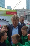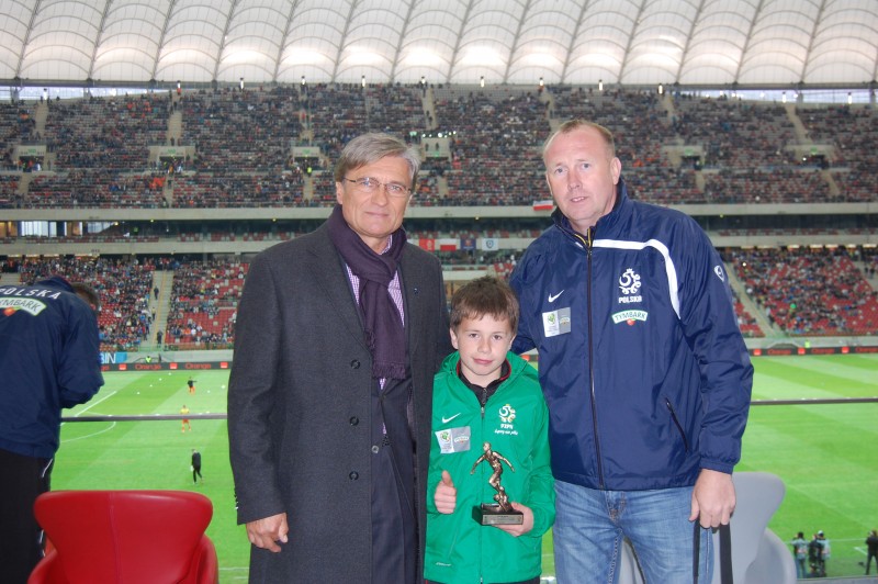 – Jestem zadowolony i szczęśliwy z tego powodu, że mogłem w piątek uczestniczyć w wielkim święcie piłkarskim na Stadionie Narodowym w Warszawie, na murawę którego wybiegły drużyny dziewczynek i chłopców Turnieju „Z Podwórka na Stadion o Puchar Tymbarku”. Uważam, że to doskonały pomysł, aby decydujące mecze rozgrywać właśnie w takim miejscu. Miejscu absolutnie magicznym! To trafia do wyobraźni młodych adeptów futbolu. Wiem, co mówię, bo sam, jako trampkarz grałem w turniejach. Rewelacyjna sprawa. A rywalizować w takim miejscu, w takiej atmosferze to bezcenne doświadczenie i zachęta na przyszłość! Na pewno każde dziecko będzie teraz marzyło o tym, aby zagrać w finale Pucharu Polski lub też w reprezentacji narodowej. Wiele drużyn zaprezentowało się ze znakomitej strony, jeśli chodzi o zdolność ruchową, ale także technikę. Widać, że szkolenie idzie w dobrym kierunku, co nas bardzo cieszy. Rośnie pokolenie, które w przyszłości da nam wiele radości – powiedział Adam Nawałka, selekcjoner reprezentacji Polski. – W piątek to ja obserwowałem Was, a już niedługo zobaczymy się w Hamburgu, gdzie reprezentacja Polski zmierzy się z Niemcami. Teraz to Wy kibicujcie nam. Do zobaczenia! – dodał trener.