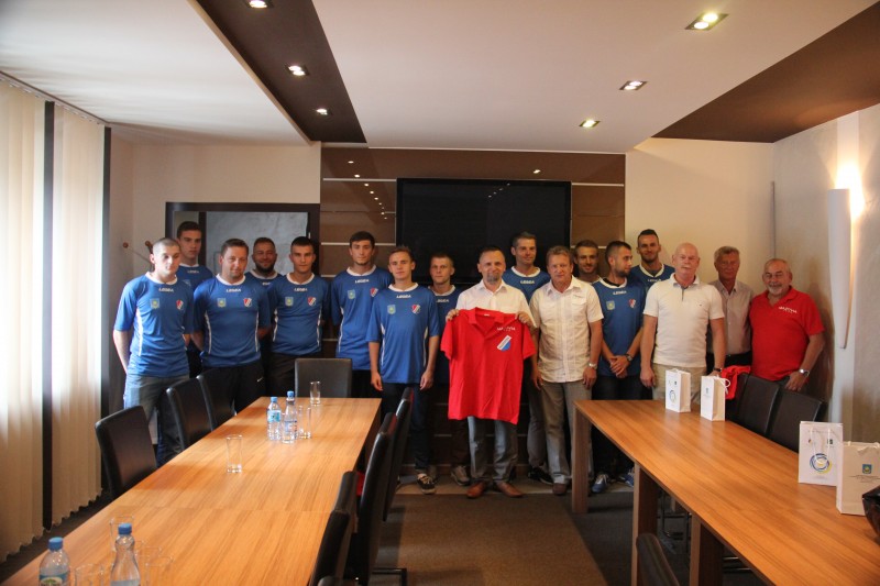 Miłym akcentem była wymiana prezentami. Kapitan drużyny Alan Grabek wręczył burmistrzowi Marcinowi Jakubowskiemu pamiątkową koszulkę, a piłkarze otrzymali drobne upominki od miasta.