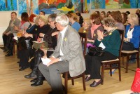 Spotkanie rozpoczęło się wykładem pana Mariusza Dzienio na temat społeczności żydowskiej Mińska i historii getta. Pan Dzienio opowiedział o tragicznych wydarzeniach 1942 roku jak również odniósł się do długiej obecności Żydów w Mińsku, ich wpływie na rozwój społeczny i kulturalny naszego miasta.