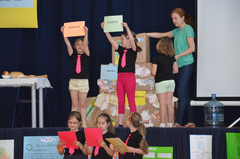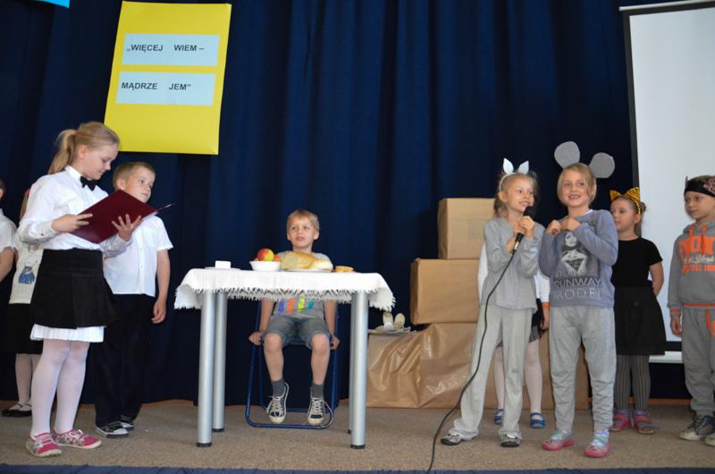 Całe spotkanie uatrakcyjniły klasy drugie budując prawdziwą piramidę zdrowego żywienia  i klasa I a w przedstawieniu „Śniadanie Grzesia”.