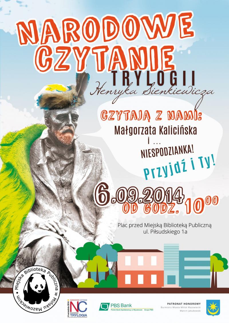 6 września już po raz drugi Miejska Biblioteka Publiczna zaprasza mińszczan do wspólnego udziału w Narodowym Czytaniu, które z inicjatywy Prezydenta Bronisława Komorowskiego odbywa się w całej Polsce.