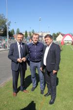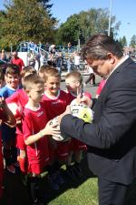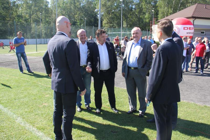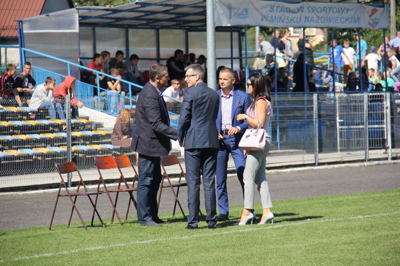 O 13.10 oddano uroczyście do użytku nową część budynku MOSiR z pomieszczeniami biurowymi, szatniami, natryskami, kuchnią i magazynami oraz symbolicznie przekazano do użytku mieszkańcom siłownie plenerowe (jedna z nich znajduje się właśnie na miejskim stadionie przy ul. Sportowej 1). Obok gospodarza obiektu Roberta Smugi i gospodarza miasta Marcina Jakubowskiego w uroczystości uczestniczył Wiceminister Obrony Narodowej Czesław Mroczek, Burmistrz Miasta Mrozy Dariusz Jaszczuk, mińscy Radni oraz przedstawiciel wykonawcy budynku Andrzej Kłosiński. Po otwarciu obiektu odbył się turniej z udziałem Gwiazd Telewizji, Samorządowców i Służb Mundurowych. Grający to lista kilkudziesięciu „gorących nazwisk”: Jakimowicz, Jachimek, R. i M. Mroczek, Chorosiński, Cypryański, Kalczyński, Buchalski i Jurkowski (Drużyna Znanych), Cz.Mroczek (Wiceminister Obrony Narodowej był gwiazdą formacji obronnej drużyny Samorządowców), Jaszczuk, Kuć, Płochocki, Cyran, Gałązka, Gryz, Lipiński, Patoka, Łagowski, Płachecki, Parchomenko (Samorządowcy) oraz Wojda, R. i M. Pałdyna, Mucha, Binkowski, Alwas, Podstawka, Fabisiak, Matasek, Cyran, Lipski, Gałązka. Po turnieju, który okazał się sukcesem Mundurowych zaprezentowały się drużyny piłkarskie MOSiR – przeprowadzono pokazowe treningi oraz rozegrano kilka konkurencji piłkarskich z nagrodami. Widok tak wielu młodych adeptów piłki nożnej (ponad 100 zawodników), grających (z sukcesami!) w barwach MOSiR Mińsk Mazowiecki natchnął wszystkich optymizmem, że z mińską piłką będzie coraz lepiej. Wymienione atrakcje to nawet nie połowa z tego, co działo się tego dnia na stadionie. Od 13.00 można było podziwiać m.in.: pokazy taekwon-do zorganizowane przez MKS TAEKWON-DO Mińsk Mazowiecki Państwa Łuniewskich, pokaz Klubu Walki GRAPPLER Państwa Frankiewiczów oraz pokaz kickboxingu prowadzony przez WALLHALA Wight Club Kamila Chłopika. Atrakcyjny dla oczu i uszu był pokaz tancerek ze Szkoły Podstawowej nr 2 prowadzonych przez trenera Pasztora i opiekującą się dziewczynkami p. Ciechańską. O oprawę muzyczną dbał zespół Kwiaty Rocka, a tańcem, czyli gorącą kolumbijską zumbą zajęła się Pani Ewelina Kaska-Łobodowska i Studio Pas a Pas. Nasz mini maraton zumby okazał się piknikowym hitem i przyciągnął na start ponad 60 osób. Przez cały czas trwania Pikniku pracownicy Miejskiego Ośrodka z pomocą ochotników z TKKF Albatros i harcerzy z ZHP Mazowsze prowadzili konkurencje zarówno sportowe jak i rekreacyjne, ale też i te umysłowe. Dzieciom, dorosłym, w rodzinach i indywidualne rozdano ponad pół tysiąca nagród. Przez cały dzień nieodpłatnie udostępniliśmy dmuchaną zjeżdżalnię, plac zabaw, bramkę celnościową, piłkarzyki, siłomierz kopacz, euro-bungee, gigantyczne piłkarzyki, przejażdżki kucykiem oraz cieszące się ogromnym zainteresowaniem malowanie buziek. Do akcji dołączyła się również Straż Pożarna, Policja i Żandarmeria Wojskowa, która obok pokazów swoich umiejętności zorganizowała konkurencje sprawnościowe z nagrodami. Do całej masy zdarzeń dodaliśmy jeszcze szachy i warcaby plenerowe oraz punkt pomiaru glukozy i ciśnienia.