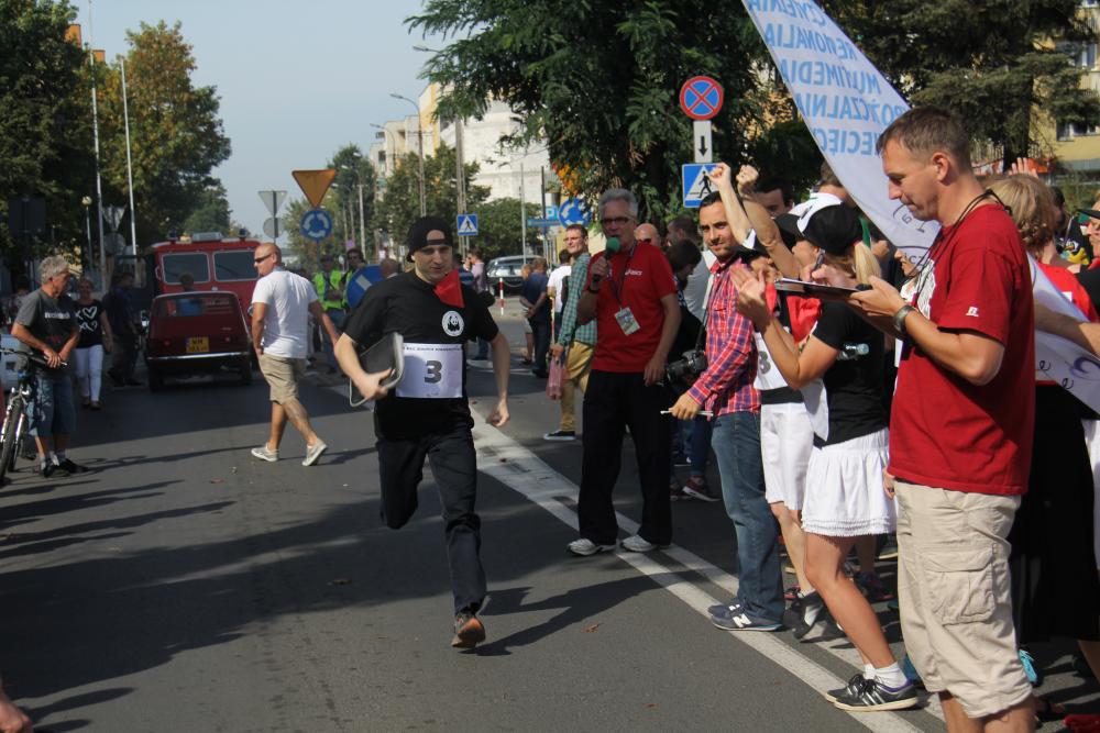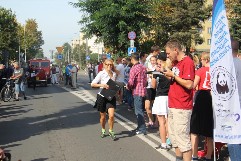 Kolejną atrakcją była jazda po 10 metrowej szynie kolejowej ułożonej tuż przed mińskim magistratem. To historia dawnego wyczynu patrona mińskich kolarzy - Feliksa Rawskiego. Ten interesujący wątek z wielką dokładnością co roku kultywuje i Leszek Celej - Dyrektor Muzeum Ziemi Mińskiej. Chociaż pretendentów do wykonania tej ewolucji było wielu, nikomu nie udało się przejechać do końca.