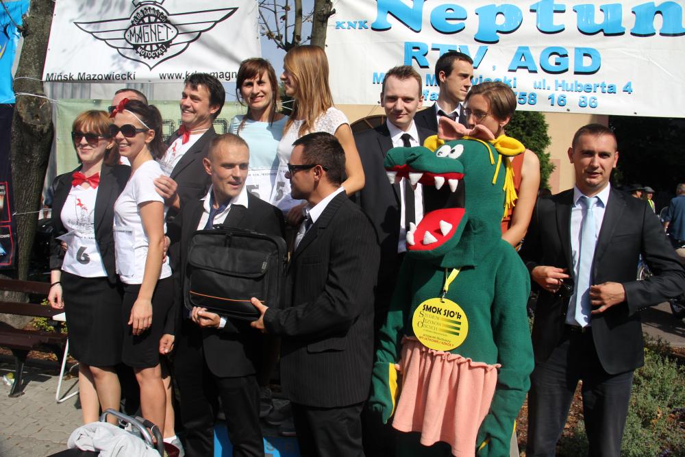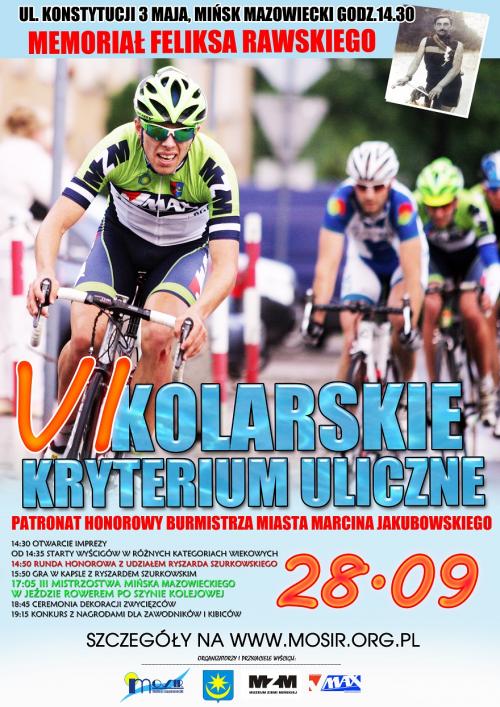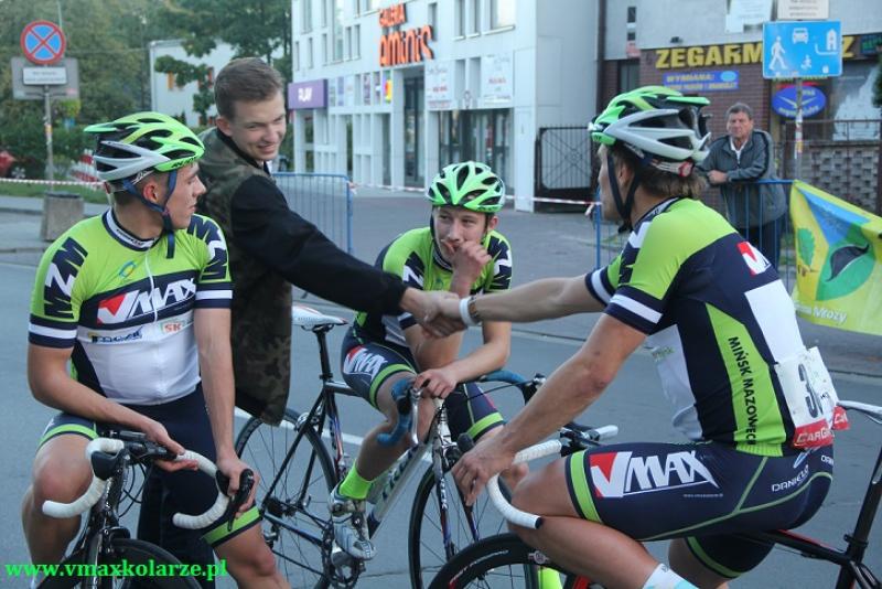Zmagania kolarskie jak zawsze bardzo podniosły temperaturę tłumu. Charakter takich wyścigów w centrum miast wyzwala wielkie emocje widzów a samym zawodnikom dostarcz olbrzymiej adrenaliny. To połączenie dynamiki, techniki i całego kunsztu szosowego ścigania. Walka na mińskiej pętli to typowe "kolarskie szachy". Pikanterii dodawała świetna jazda kolarzy mińskiego klubu V-MAX skupionego przy Miejskim Ośrodku Sportu i Rekreacji. Podopieczni trenera Jacka Tomkiewicza - jak zawsze ambicjonalnie podeszli do występów przed własną publicznością i w większości kategorii wiekowych zdominowali rywalizację. W kategoriach dla dzieci i młodzieży - V-MAX pokazał wielką klasę. Największe zainteresowanie skupiały dwa ostatnie wyścigi mężczyzn rozegrane tuż przed wieczorem. W pierwszym z nich perfekcyjnie współpracowali Mastersi z mińskiego V-MAXu Tomek Czyżkowski i Jacek Tomkiewicz, którzy skutecznie ujarzmili szybki peleton zajmując czołowe lokaty. W ostatnim wyścigu Elity - ciężko było wskazać lidera. Decydującą rolę znów odegrała zespołowa praca naszej drużyny która po prostu zamęczała po kolei wszystkich rywali. Na mecie znów - dwa czołowe miejsca dla naszych. W geście zwycięstwa uniósł do góry ręce Darek Kołakowski a za nim Adam Borkowski. Obaj nie zapomnieli na mecie wskazać na pięknych koszulkach herbu Mińska Mazowieckiego.