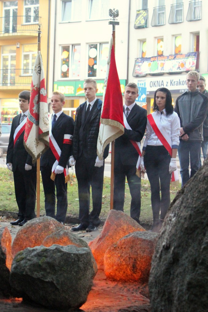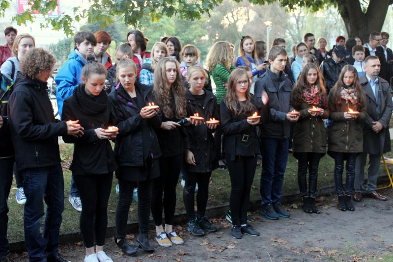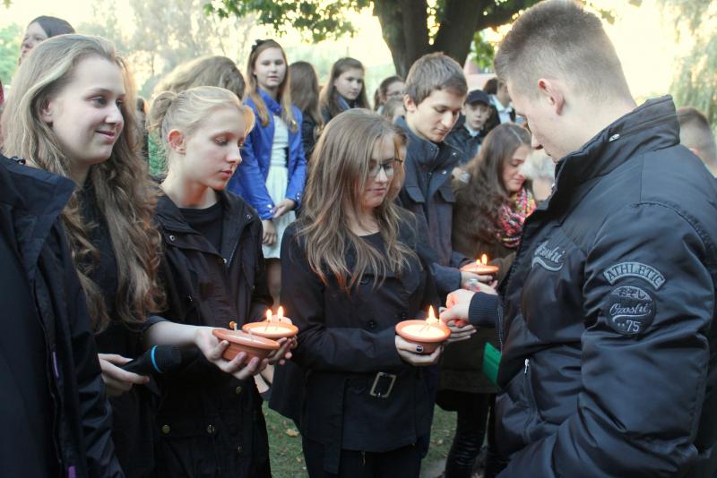 W piątkowy wieczór 26 września 2014 roku przy Pomniku Szarych Szeregów uczniowie klasy 3c Gimnazjum Miejskiego nr 1 wsparci przez absolwentów i pod opieką pani Małgorzaty Roguskiej zaprezentowali spektakl upamiętniający członków Polskiego Państwa Podziemnego, którego 75. rocznicę utworzenia obchodzimy w tym miesiącu.