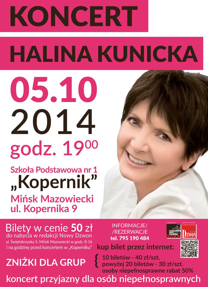 Halina Kunicka to piosenkarka, której przeboje: „Orkiestry dęte”, „Czumbalalajka”, „Francis Villon”, „Marionetka” czy „Wiatr kołysze gałązkami” znają chyba wszyscy. Jej talent zauważyła mama, która w 1957 roku „przymusiła” ją, żeby wzięła udział w radiowym konkursie dla piosenkarzy amatorów. Wielką rolę w rozwoju jej kariery odegrał Lucjan Kydryński, który był mężem Haliny Kunickiej przez ponad 40 lat. On umożliwił jej kontakty z największymi twórcami przełomu lat 50. i 60. W tamtych czasach powstały np. „Gwiazda miłości”, „ Marionetka” czy „To były piękne dni”. W latach osiemdziesiątych nagrała płytę „12 godzin z życia kobiety”, na której wszystkie teksty napisał dla niej Wojciech Młynarski, a muzykę Jerzy Derfel. Dziś Halina Kunicka dużo koncertuje. Cały czas zmienia i urozmaica program, korzystając z bogactwa swojego repertuaru.