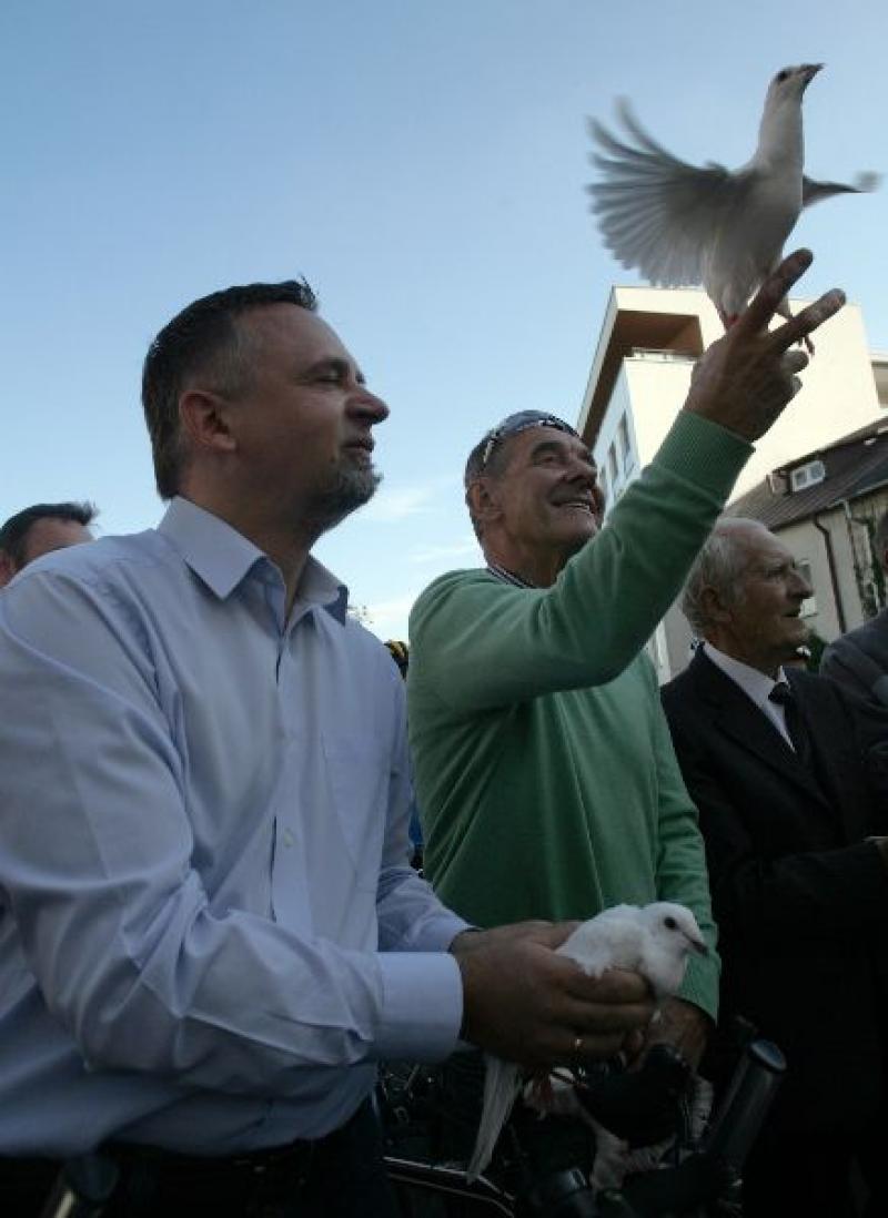 VI Kolarskie Kryterium...więc 6 gołębi które na starcie rundy honorowej wypuścili m.inn. Burmistrz Marcin Jakubowski oraz Ryszard Szurkowski - znakomity niegdyś kolarz, mistrz świata i wielki autorytet. Runda honorowa nazywana w powiecie mińskim "Rowerową RekreAKCJĄ" zgromadziła dzieci, młodzież i dorosłych rowerzystów. Do tej grupy chętnie dołączyli sami kolarze a cały mieszany peleton poprowadził "Mistrz Szurkowski" wspierany przez najmłodszych rowerzystów oraz gospodarzy naszego miasta.