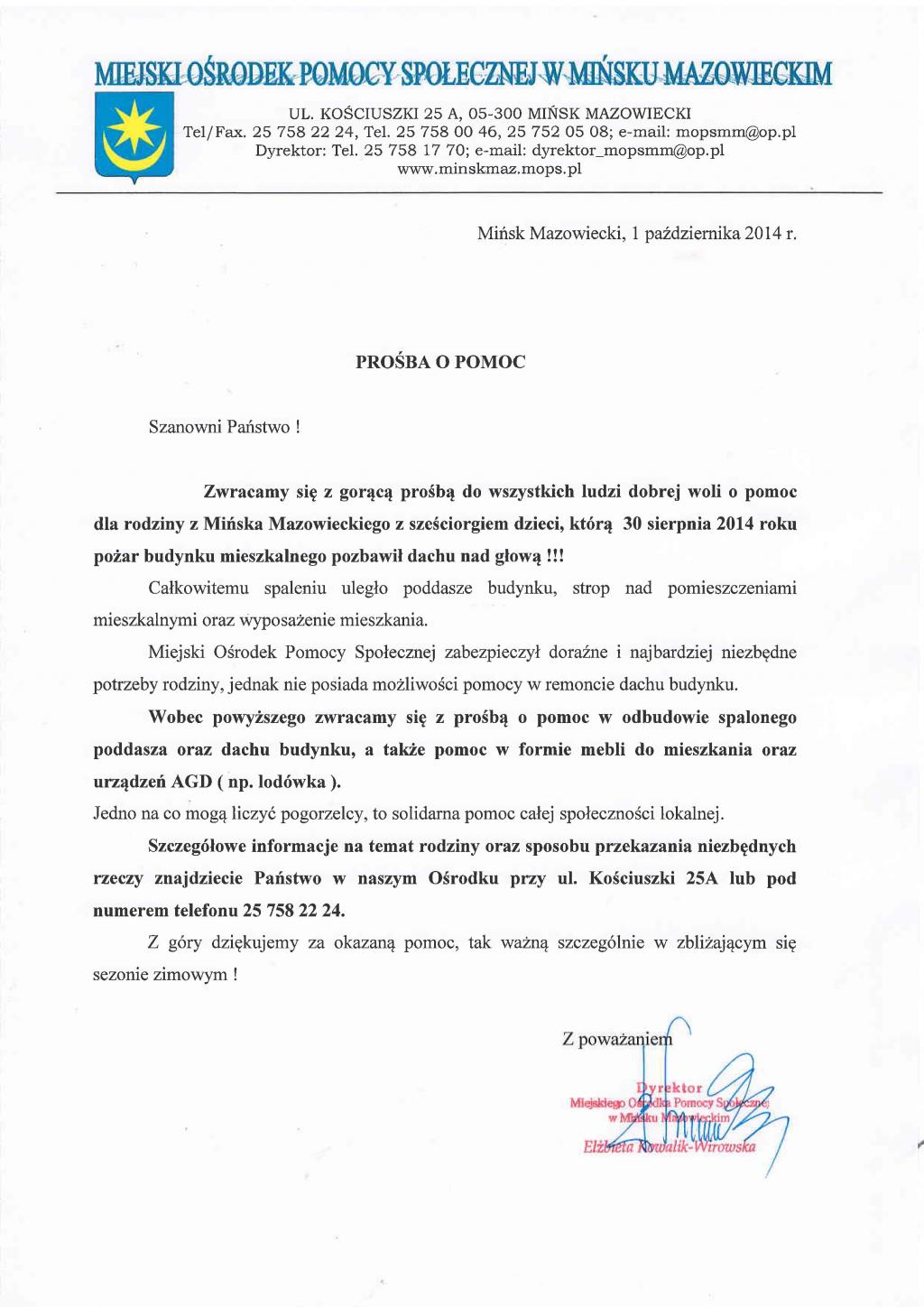 Powyższy wykaz wywieszono na tablicy ogłoszeń Urzędu Miasta Mińsk Mazowiecki przy ul. Konstytucji 3 Maja 1 na okres od dnia 26 września 2014 r. do dnia 16 października 2014 r.