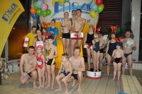 Konkurencje dla starszych dzieci to sztafeta 2x25m stylem dowolnym, holowanie najmłodszego członka rodziny w kole ratunkowym, zjazd na czas na zjeżdżalni, wodne połowy kolorowych piłeczek, pływanie na materacu oraz najbardziej atrakcyjna konkurencja czyli wyścig na ogromnych, dmuchanych pontonach. W tej kategorii triumfowała rodzina Państwa Pożyckich, drugą lokatę zajęli Państwo Radomińscy, zaś trzecie miejsce przypadło Państwu Pastuszkom. Najlepsze drużyny w obu kategoriach otrzymały okazale puchary, dyplomy oraz nagrody rzeczowe, natomiast każda startująca rodzina otrzymała dyplom, słodki upominek i nagrodę niespodziankę w postaci talonu na rodzinny wypad do jednej z mińskich pizzerii. Wspaniały uśmiech, okrzyki radości i mnóstwo emocji towarzyszyło uczestnikom tegorocznych zmagań, rodzinna atmosfera panująca wśród uczestników oraz mnóstwo radości stały się są nieodłącznym elementem Rodzinnych Zawodów Pływackich.