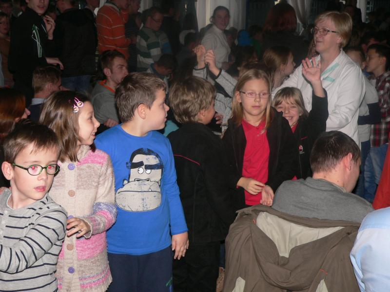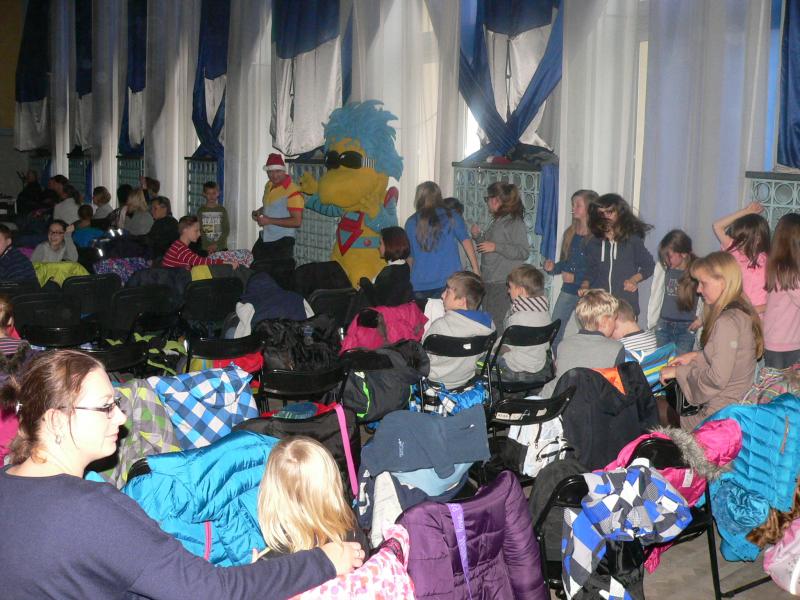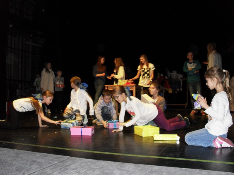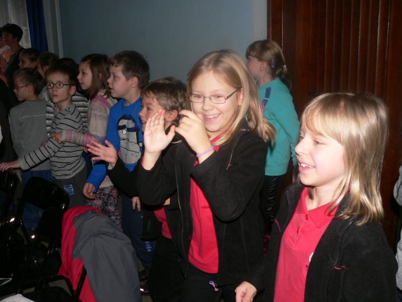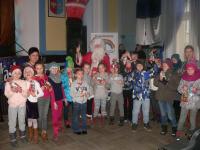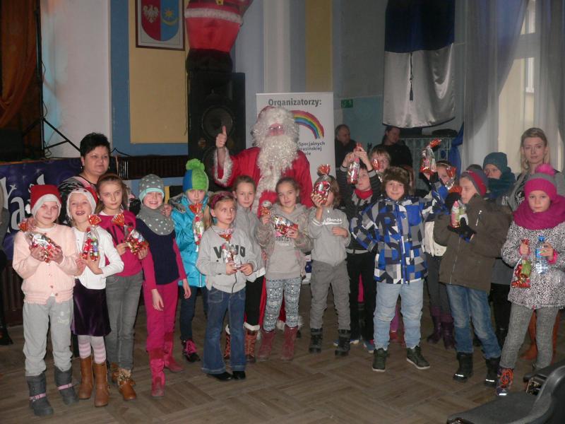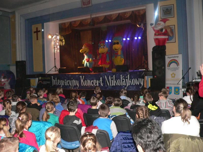 Wspaniałą zabawę muzyczną prowadził zespół Kosmokwaki. Do zabawy wszystkich dzieci zachęcały trzy żywe maskotki - Kwakot, Monia, Kwanio. Na zakończenie koncertu każde dziecko otrzymało słodki upominek, który rozdawał Mikołaja wraz z Elfami – wolontariuszami, uczniami gościnnej szkoły.