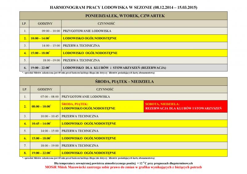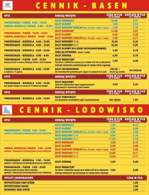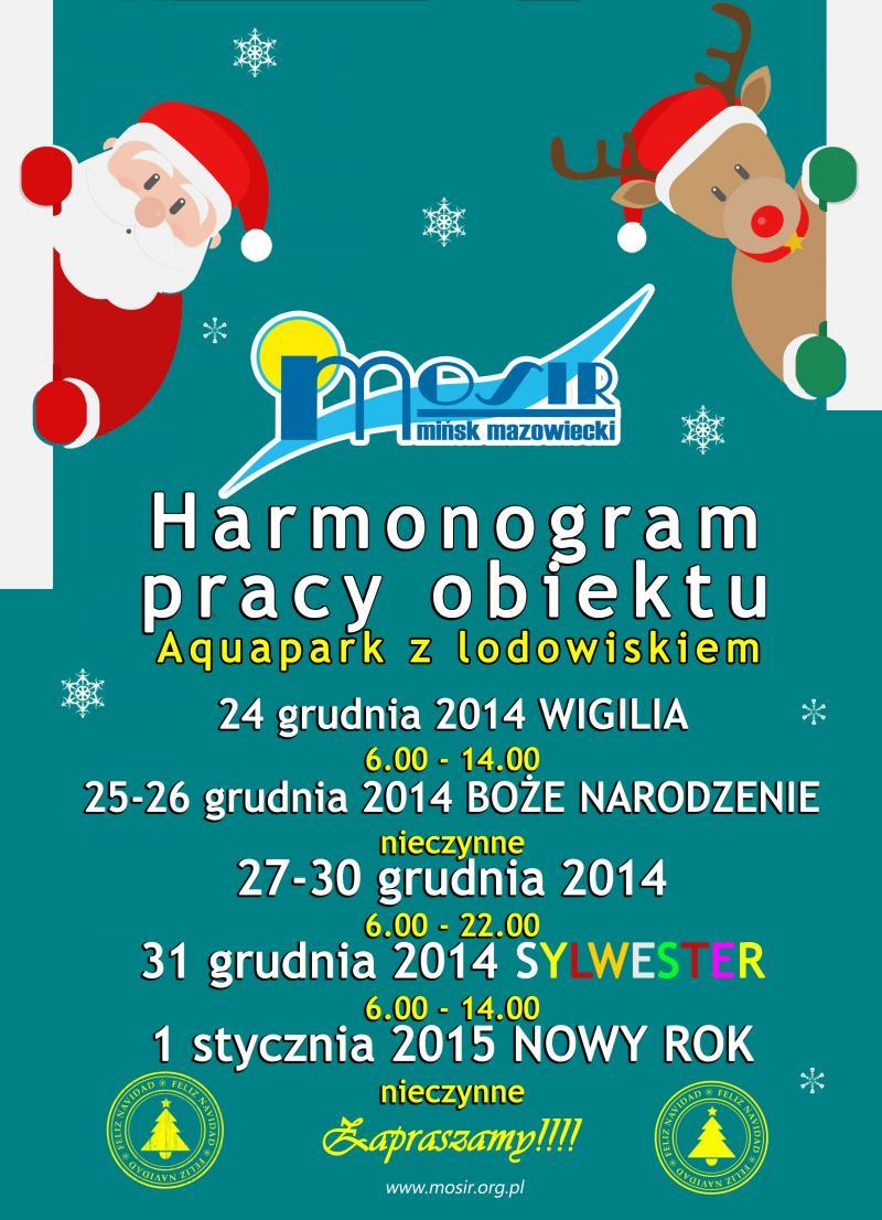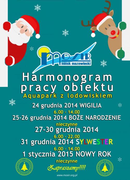 Harmonogram pracy aquaparku i lodowiska w okresie Świąt |