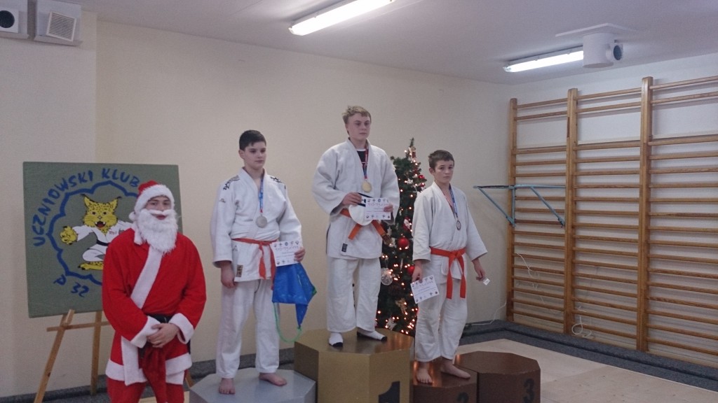 W kategorii dzieci - 39kg złoty medal zdobył Krystian Adamczyk wygrywając 4 walki przed czasem na ippon. W tej samej wadze V miejsce zajął Damian Zaperty - 2 walki wygrane. W kategorii młodziczek w wadze 40kg złoty medal zdobyła Aleksandra Polkowska. W kategorii 52kg srebrny medal zdobyła Dominika Adamczyk. W kategorii 57kg brązowy medal zdobyła Wiktoria Zalewska. W kategorii młodzików złoty medal zdobył Patryk Pszonka (73kg) wygrywając 4 walki na ippon. Srebrny medal w kategorii 60kg zdobył Jakub Kretowicz. Zawodnicy wiele walk wygrali z zawodnikami z renomowanych klubów warszawskich. Życzymy wszystkim sympatykom judo i wszystkim sportowcom i działaczom sportowym miłych świąt.