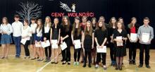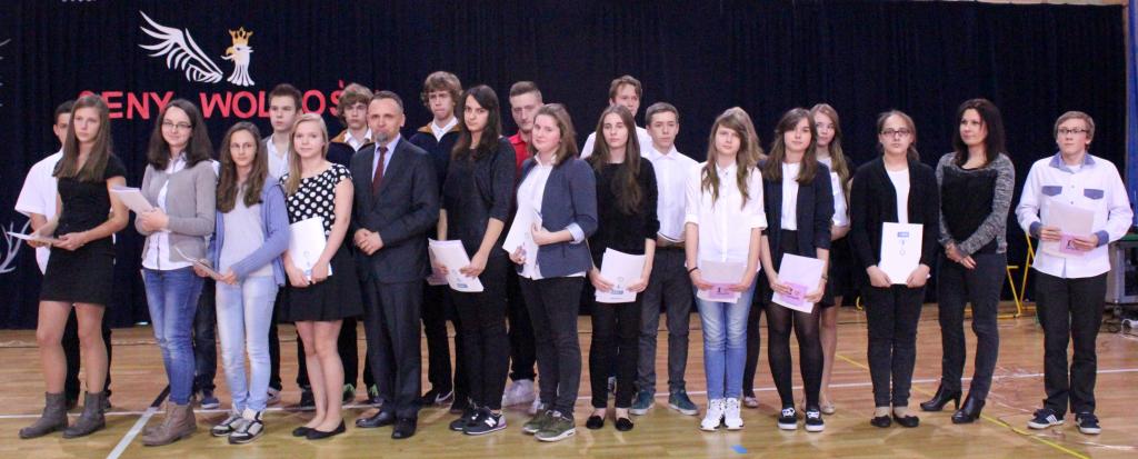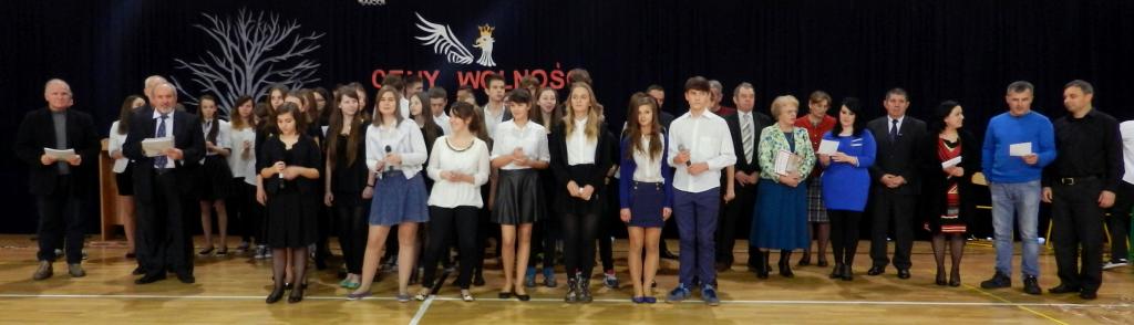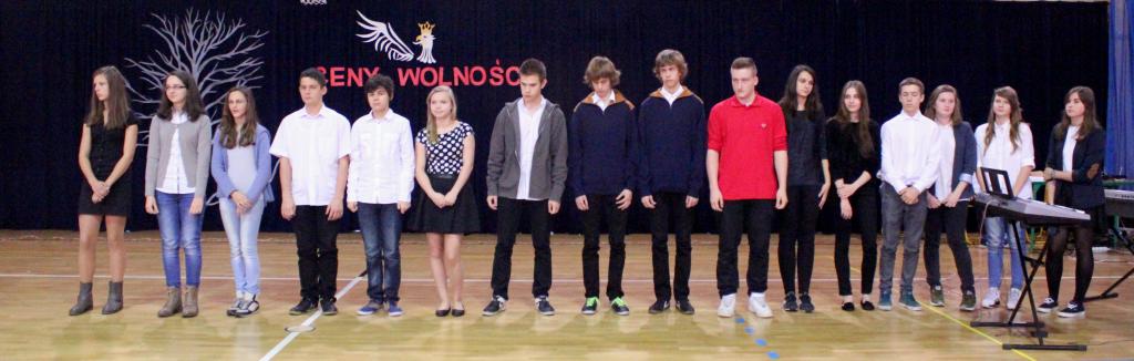 W ramach projektu młodzież miała szansę wziąć udział w dwóch konkursach: literacko-plastycznym „Ceny wolności” oraz wokalnym „Dźwięki wolności” i właśnie od występów wokalnych rozpoczęła się piątkowa uroczystość. Zadaniem uczestników konkursu było zaprezentowanie piosenki nawiązującej tematycznie do stanu wojennego. Usłyszeliśmy: „Psalm stojących w kolejce” ze słowami Ernesta Brylla i muzyką Wojciecha Trzcińskiego, „Ojczyzno ma” autorstwa księdza Karola Dąbrowskiego, wiersz Nataniela Tenenbauma pt. „Modlitwa o wschodzie słońca” z muzyką Przemysława Gintrowskiego, wiersz Adama Asnyka „Miejcie nadzieję” z muzyką Zbigniewa Preisnera oraz „Taki kraj” autorstwa Jana Pietrzaka i Zbigniewa Raja. Jury w składzie: pani Ewa Żak - wicedyrektor ZSM nr 1, pani Małgorzata Lewandowska – muzyk i pracownik Szkoły Muzycznej Yamaha oraz pan Grzegorz Padzik – przewodniczący NSZZ „Solidarność” Mińsk Mazowiecki po wysłuchaniu uczestników konkursu przyznało następujące lokaty: I miejsce ex aequo – Kacper Kuca z Gimnazjum Miejskiego nr 3 (opiekun pan Stanisław Halagiera) oraz zespół Ars Nova (Iza Rosiecka, Alicja Chodorska, Paulina Mogielska, Julia Korzeniewska, Aleksandra Grudkowska, Piotr Zyglarski) z Gimnazjum Miejskiego nr 2 (opiekun pani Magdalena Jakubowska), II miejsce – Aleksandra Rek z Salezjańskiego Gimnazjum (opiekun pan Jakuba Maguza), III miejsce ex aequo – Oliwia Godlewska oraz zespół Bez cenzury (Weronika Rucińska, Julia Sulej, Emilia Matejuk, Natalia Nowak, Martyna Bakuła, Ola Paduch, Maja Rychter, Sara Górska i Paulina Miernicka) z Gimnazjum Miejskiego nr 1 (opiekunowie: pan Tomasz Zalewski oraz pani Magdalena Dąbrowa).