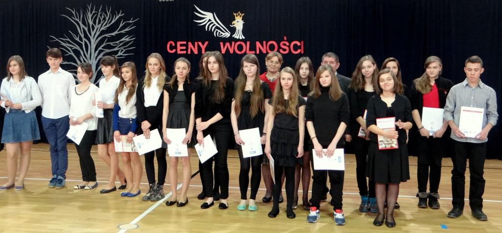 Kolejnym punktem uroczystości było ogłoszenie wyników konkursu literacko-plastycznego „Ceny wolności”. Młodzi ludzie, którzy mieli w swoich pracach zaprezentować sylwetki i wspomnienia mieszkańców naszego miasta lub okolic z okresu stanu wojennego, przedstawili państwa: Urszulę Ćwiek, Barbarę Łopacką, Leszka Celeja, Czesława Czyżkowskiego, Grzegorza Padzika, Stanisława Nowakowskiego, Pawła Woźnicę, Wiesławę i Tomasza Fusików, Irenę i Wojciecha Grabarczyków, Anielę i Aleksandra Woźniców, Barbarę i Waldemara Szymańskich oraz Alicję i Jarosława Sowów.