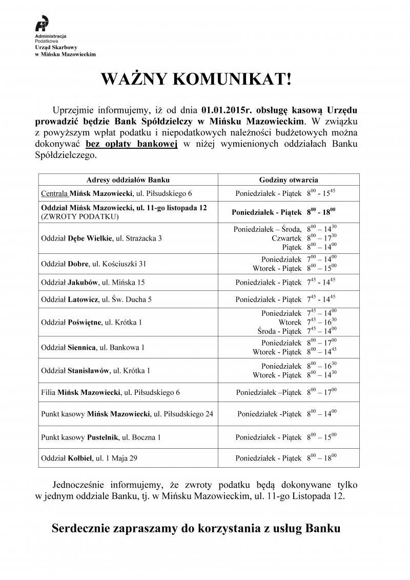 Ważne informacje z Urzędu Skarbowego w Mińsku Mazowieckim |