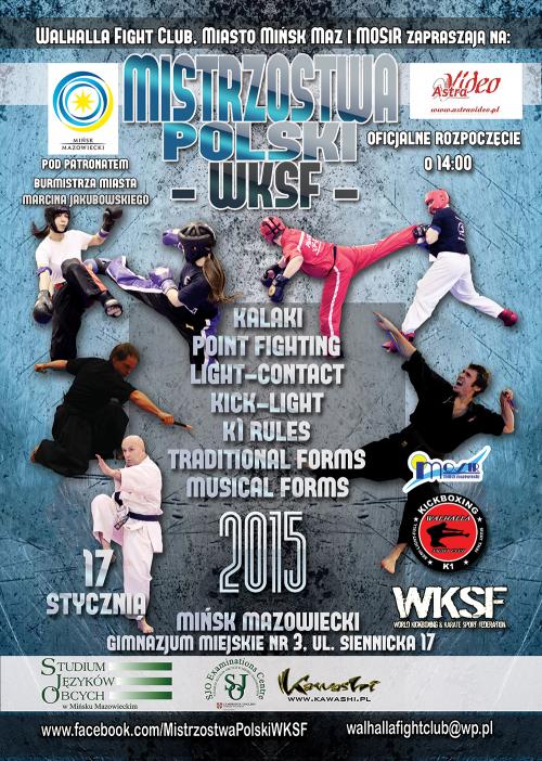A już niebawem w naszym mieście odbędzie się nie lada widowisko na skalę ogólnopolską, turniej sztuk walk w Mińsku Mazowieckim. W dniu 17 stycznia 2015 r. w hali widowiskowo – sportowej przy Zespole Szkół nr 2 w Mińsku Mazowieckim odbędą się Otwarte Mistrzostwa Polski Sztuk Walk federacji WKSF, których głównym organizatorem jest Walhalla Fight Club. Turniej odbędzie się pod patronatem honorowym Burmistrza Miasta Mińsk Mazowiecki – Pana Marcina Jakoubowskiego oraz przy współudziale sponsorów tego niecodziennego wydarzenia min. MOSiR Mińsk Mazowiecki, Studium Języków Obcych w Mińsku Mazowieckim, firmy przewozowej Fast Travels, Astra Video, agencji fotograficznej „Nasze-ślubne” oraz Zespołu Szkół Nr 2 w Mińsku Mazowieckim.