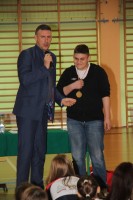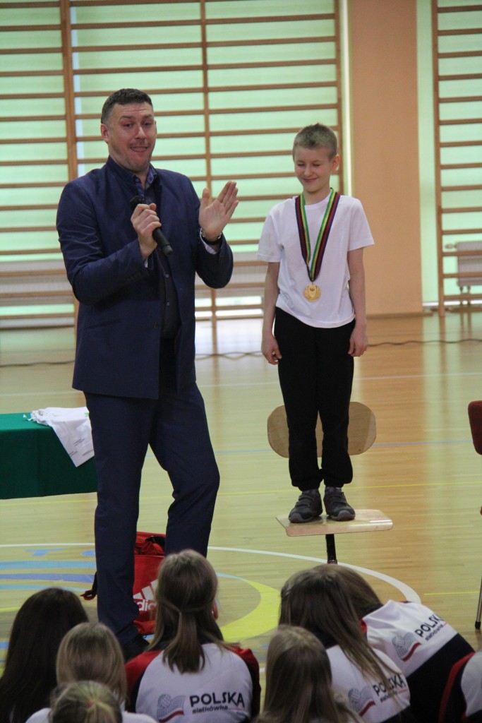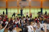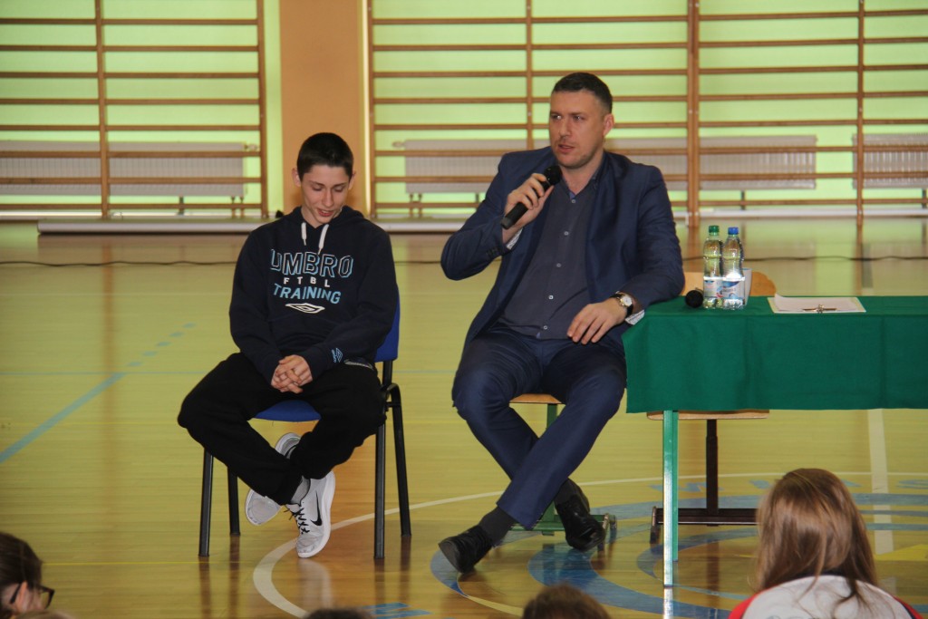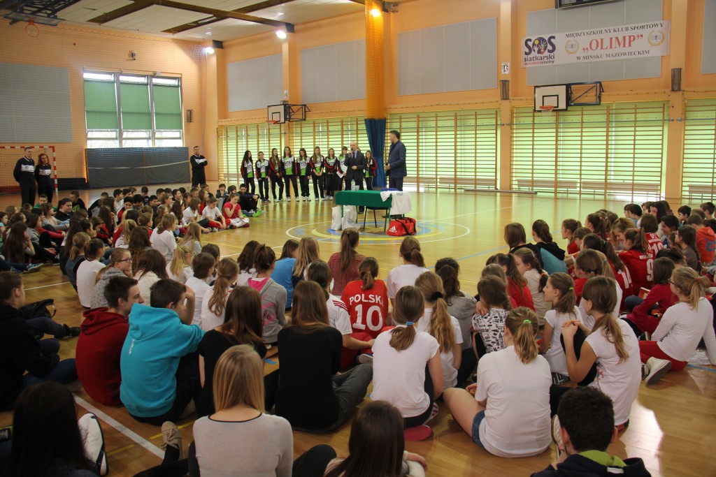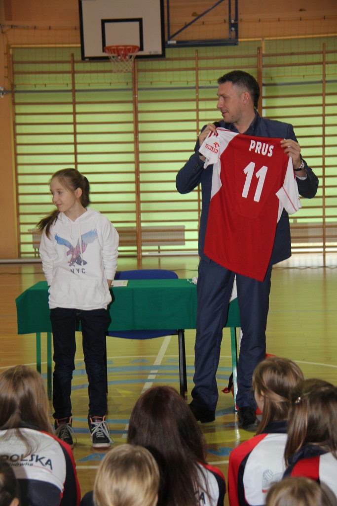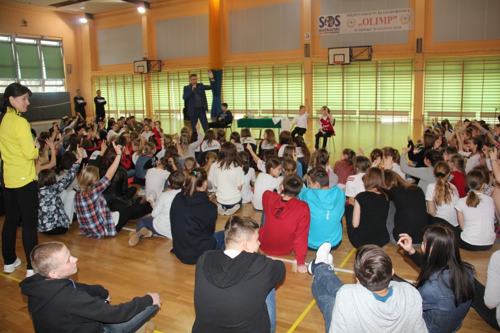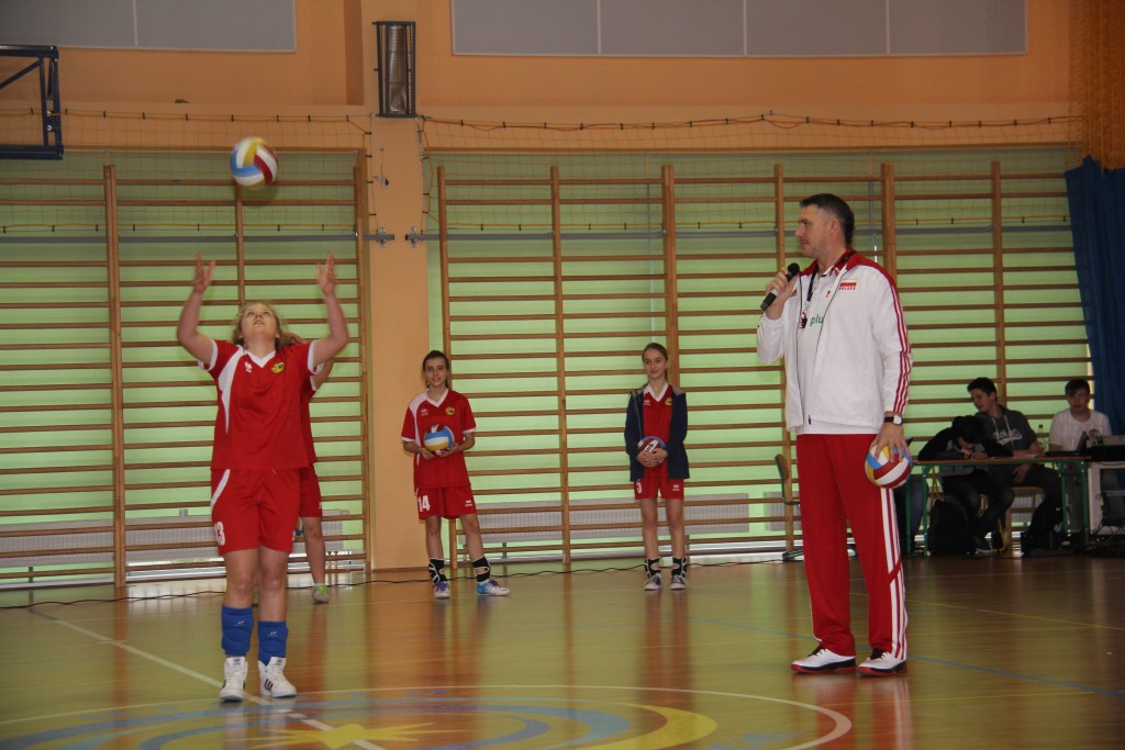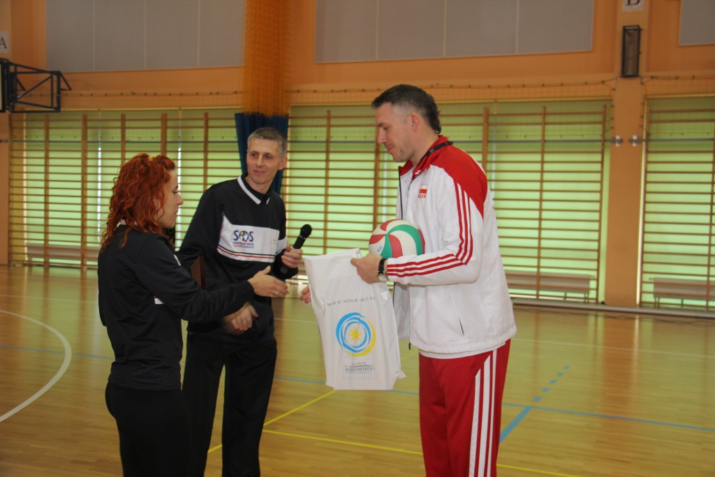 Honorowy gość opowiadał o swojej karierze sportowej, zachęcając dzieci do rozpoczęcia przygody z siatkówką od najmłodszych lat, zaprezentował medale, jakie zdobył podczas Mistrzostw Świata i Europy, a następnie cierpliwie odpowiadał na liczne pytania zadawane przez uczniów. Kolejnym ważnym punktem spotkania był trening prowadzony przez Mistrza. W zajęciach uczestniczyły uczennice ze szkół podstawowych reprezentujące mińską Akademię Siatkówki S.O.S.