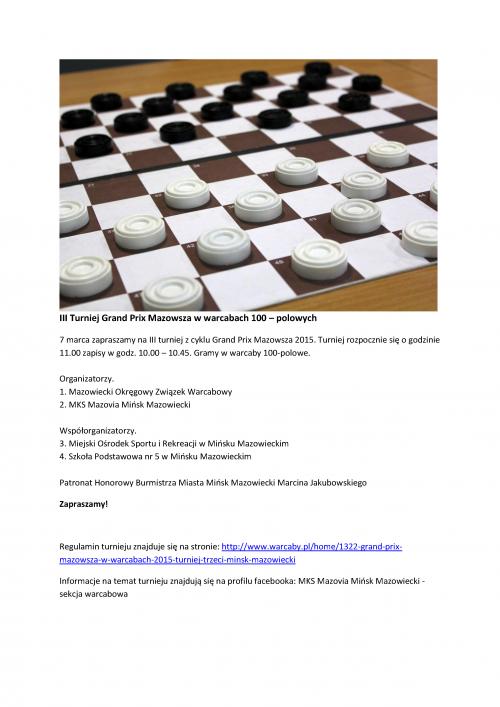 III Turniej Grand Prix Mazowsza w warcabach 100 – polowych |