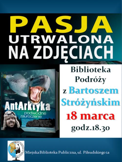 Niebawem Miejska Biblioteka Publiczna przeniesie czytelników do fascynującego świata Arktyki i Antarktyki, pełnego pięknych krajobrazów i niezwykle rzadkich gatunków zwierząt. Już 18 marca, o godzinie 18:30 biblioteka zabierze wszystkich uczestników spotkania w subiektywną podróż fotograficzną do najodleglejszych i najzimniejszych rejonów kuli ziemskiej. Będzie to możliwe, dzięki obecności Bartosza Stróżyńskiego – znakomitego fotografa i podróżnika, autora niedawno wydanej książki „AntArktyka. Podwodne zauroczenie”. Podczas spotkania czytelnicy będą mieli okazję nie tylko obejrzeć zachwycające zdjęcia, ale również nabyć wiedzę o podstawach nurkowania i fotografii. Zapraszamy wszystkich w morskie głębiny na poszukiwanie przygody!