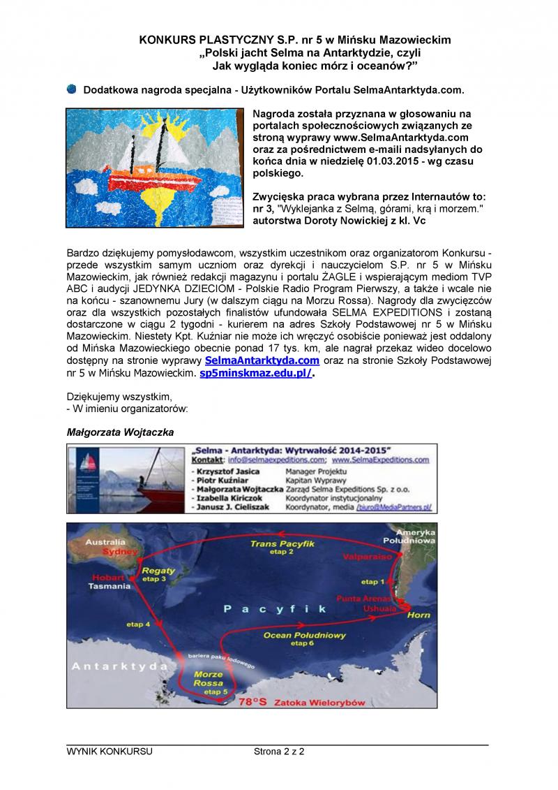 Wyniki Konkursu plastycznego S.P. nr 5 w Mińsku Mazowieckim pt. „Polski jacht Selma na Antarktydzie, czyli jak wygląda koniec mórz i oceanów”