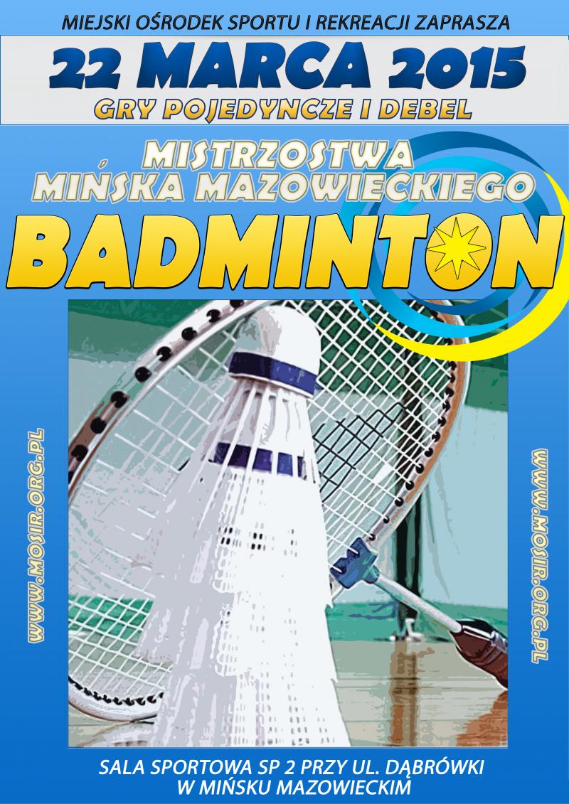 Miejski Ośrodek Sportu i Rekreacji zaprasza na Mistrzostwa Mińska Mazowieckiego w Badmintonie, które odbędą się w Sali gimnastycznej SP nr 2 przy ul. Dąbrówki 10 w Mińsku Mazowieckim. 28 marca zawodnicy będą rywalizować w następujących kategoriach: Skrzaty, Deble (od 10.00), Open-ranga I (godz. 13.00) oraz Open-ranga II (godz. 13.30). Zawody zakończą trwający od listopada 2014 cykl Grand Prix. Wspaniała atmosfera podczas turniejów oraz rywalizacja na wysokim poziomie gwarantowana. Serdecznie zapraszamy!