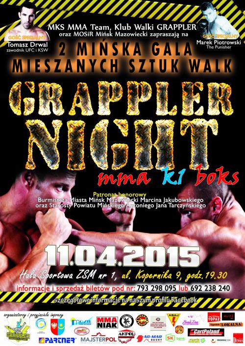 To już 12 impreza zorganizowana przez Klub Walki Grappler, następne wydarzenie w naszym mieście już za niespełna miesiąc 11 kwietnia zapraszamy na II edycję zawodowej Gali Mieszanych Sztuk Walk Grappler Night do Hali Sportowej ZSM nr 1 przy ul. Kopernika 9 o godz. 19.30. Emocji na pewno nie zabraknie. Zapraszamy.