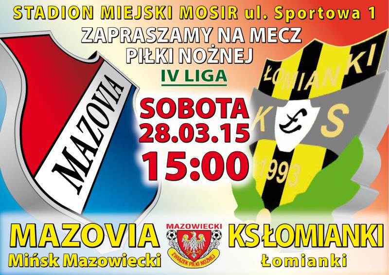 W najbliższą sobotę 28 marca pierwsza drużyna Mazovii zmierzy się w Mińsku na boisku przy ul. Sportowej z KS Łomianki. Mecz zapowiada się szalenie ciekawie, bowiem obydwie drużyny posiadają tą samą ilość punktów w tabeli. Spotkanie rozpoczyna się o godz. 15:00 – zapraszamy do kibicowania! Z kolei w niedzielę 29 marca rozgrywki A-klasowe rozpoczyna druga drużyna Mazovii walcząca o awans do Ligi Okręgowej – mecz z Wichrem Sadowne na boisku przy ul. Sportowej o godz. 14:30. Serdecznie zapraszamy kibiców!