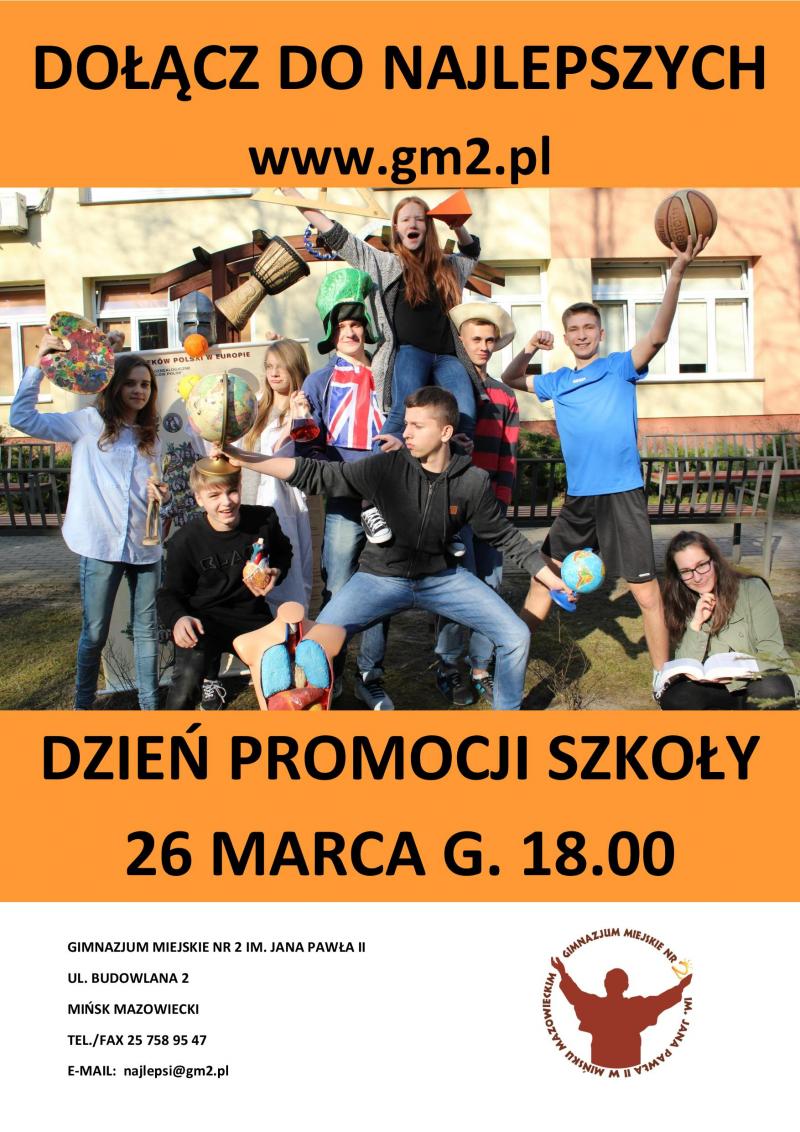 26 marca o godz. 18.00 drzwi Gimnazjum Miejskiego nr 2 im. Jana Pawła II w Mińsku Mazowieckim zostaną otwarte dla szóstoklasistów i ich rodziców. Kandydatom na uczniów gimnazjum pokaże, jaką przygotowało dla nich ofertę.