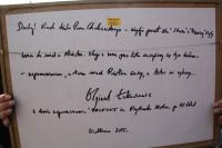 Drodzy! Niech dzieło Pana Chabrowskiego – niegdyś prezent dla „Stasia” z „Brzeziny” Wajdy wraca do swoich w Mińsku. Oboje z żoną przez lata cieszyliśmy się tym dziełem – wspomnieniem, a teraz niech Państwa cieszy, a Autor mi wybaczy…
