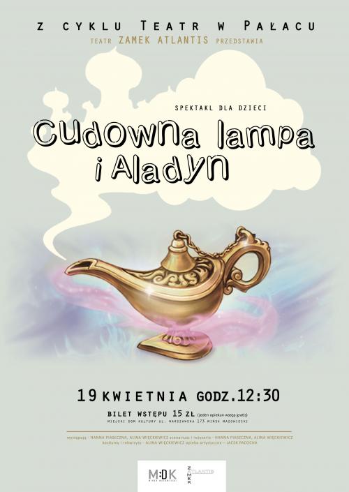 Miejski Dom Kultury i Zamek Atlantis zapraszają na spektakl „Cudowna lampa i Aladyn". Spektakl w wykonaniu Zamku Atlantis - teatru działającego na Zamku Królewskim w Warszawie.