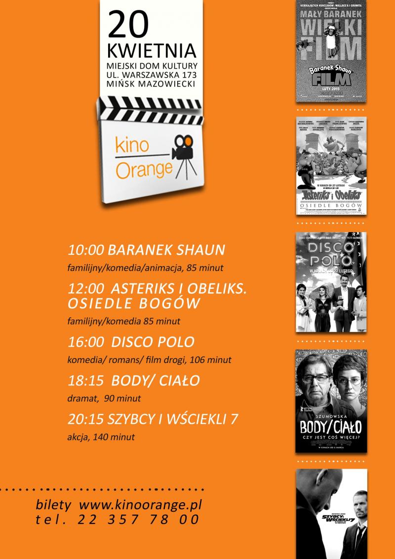 Kino Orange to największego kino objazdowe, które wyświetla najnowsze produkcje filmowe w miejscowościach, w których na co dzień nie ma kin. Seanse odbywają się na profesjonalnym sprzęcie projekcyjnym, w najwyższej jakości obrazu i dźwięku, z wykorzystaniem nowoczesnych technologii. Dzięki projektorowi cyfrowemu, widzowie mogą oglądać filmy w technologii 3D.
