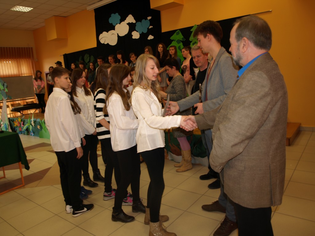 Trzecioklasiści od początku marca co weekend mogli rozwiązywać przygotowane dla nich zadania ze wszystkich przedmiotów egzaminacyjnych. Każdy uczeń miał szansę na sukces, ponieważ idea projektu jest taka, żeby uczniowie rozwiązywali zadania o zróżnicowanym stopniu trudności dostosowanym do swoich możliwości. Tegoroczną innowacją zaproponowaną i przygotowaną technicznie przez informatyka – pana Mariusza Jaguścika było przeprowadzenie Maratonu Wiedzy z wykorzystaniem platformy internetowej Classroom. Każdy uczeń otrzymywał kod dostępu do platformy, logował się na swoim koncie, gdzie znajdował zestaw zadań do wykonania przez weekend. Okazało się, że Classroomy przypadły do gustu zarówno uczniom, którzy chętnie wypełniali zadania za pośrednictwem nowego narzędzia edukacyjnego, jak i nauczycielom, którzy bardzo sprawnie mogli ocenić uczniowskie odpowiedzi i opatrzyć je odpowiednim komentarzem. Przez trzy kolejne tygodnie trzecioklasiści gromadzili punkty na swoim koncie, a zwieńczeniem prawie miesięcznych starań była dodatkowa porcja wiedzy, którą mogli zdobyć podczas nocki w szkole z piątku na sobotę 27/28 marca.