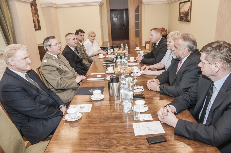 Wojskową Akademię Techniczną reprezentował Jego Magnificencja Rektor gen. bryg. prof. dr. hab. inż. Zygmunt Mierczyk, Powiat Miński w imieniu Zarządu, reprezentowali Starosta Miński Antoni Jan Tarczyński oraz Wicestarosta Miński Krzysztof Płochocki, Zespół Szkół zawodowych nr 2 im. Powstańców Warszawy w Mińsku Mazowieckim reprezentował dyrektor Tomasz Płochocki. Delegacji z Mińska Mazowieckiego towarzyszyła naczelnik Wydziału Oświaty i Promocji Emilia Piotrkowicz. Delegacja z Mińska miała okazję zapoznać się z dorobkiem naukowo-badawczym i dydaktycznym WAT, przedstawionym przez mgr. inż. Wiesława Szczygielskiego. W trakcie spotkania z rektorem WAT gen. bryg. prof. Zygmuntem Mierczykiem, prorektorem ds. studenckich dr. inż. Stanisławem Konatowskim i zastępcą dziekana ds. wojskowych Wydziału Mechanicznego płk. dr. inż. Adamem Bartnickim, poruszono wiele problemów dotyczących edukacji, a dyrektor Zespołu Szkół zaprezentował osiągnięcia i profil placówki, którą kieruje. Padło wiele pytań na temat warunków i możliwości studiowania w Wojskowej Akademii Technicznej. Podziękowanie za zorganizowanie spotkania przekazał starosta A.J. Tarczyński podkreślając, że zawarte dzisiaj porozumienie jest bardzo dobrym początkiem owocnej dla stron współpracy.