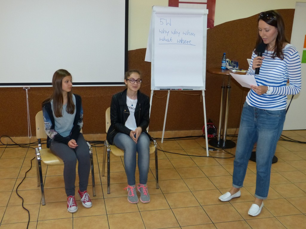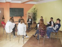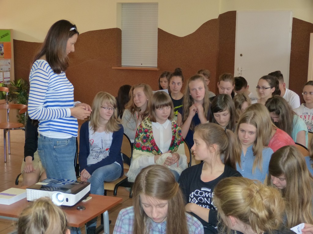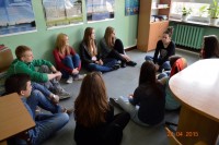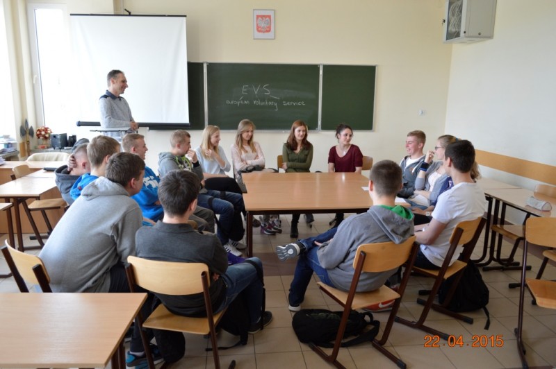 W kwietniu wolontariusze poprowadzili serię warsztatów konwersacyjnych dla młodzieży gimnazjalnej w Gimnazjum Miejskim nr 2 im. Jana Pawła II oraz w Zespole Szkół Miejskich nr 2. Dla młodzieży licealnej przygotowali spotkania dotyczące Wolontariatu Europejskiego, zachęcające do udziału w projektach wolontariatu w Mińsku, jak również za granicą państwa. O wolontariacie rozmawiali już z uczniami w Gimnazjum i Liceum Ogólnokształcącym im. Polskiej Macierzy Szkolnej, w Zespole Szkół nr 1 im. Kazimierza Wielkiego oraz w Zespole Szkół im. Marii Skłodowskiej-Curie.