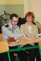 Absolwenci nas nie zawiedli, mimo, że niektórzy czasem zaglądają do nas na przerwie, to i tak licznie przybyli na spotkanie, niektórzy samodzielnie, inni w towarzystwie rodzin i przyjaciół. Powitaniom towarzyszyły emocje zarówno nauczycieli jak i gości. W pierwszej części spotkania obejrzeliśmy prezentację multimedialną ze zdjęciami z życia szkolnego i klasowego naszych absolwentów, gdzie każdy mógł odnaleźć ślady swojej obecności w szkole. Następstwem skutecznie przywołanych wspomnień były autoprezentacje samych absolwentów. Byli uczniowie opowiadali o ich obecnej drodze edukacji, osiągnięciach, zainteresowaniach i planach na przyszłość. Ochotnicy zaprezentowali swoje talenty wzruszając publiczność, a jednocześnie dobrze się bawiąc. Był to również znakomity czas na refleksje i wymianę doświadczeń uczniów i rodziców, okazja, by przy filiżance herbaty odświeżyć stare i nawiązać nowe kontakty. Nasi obecni podopieczni zadbali o to, by wszyscy mogli raczyć się słodkimi wypiekami.