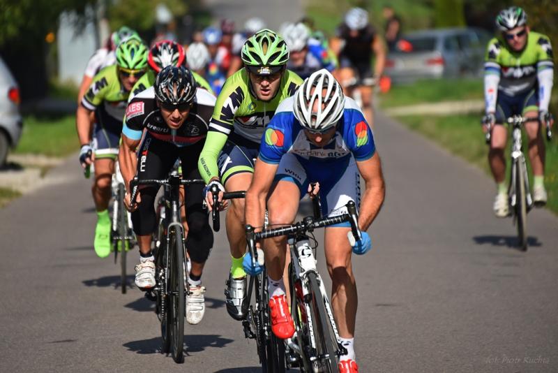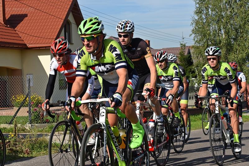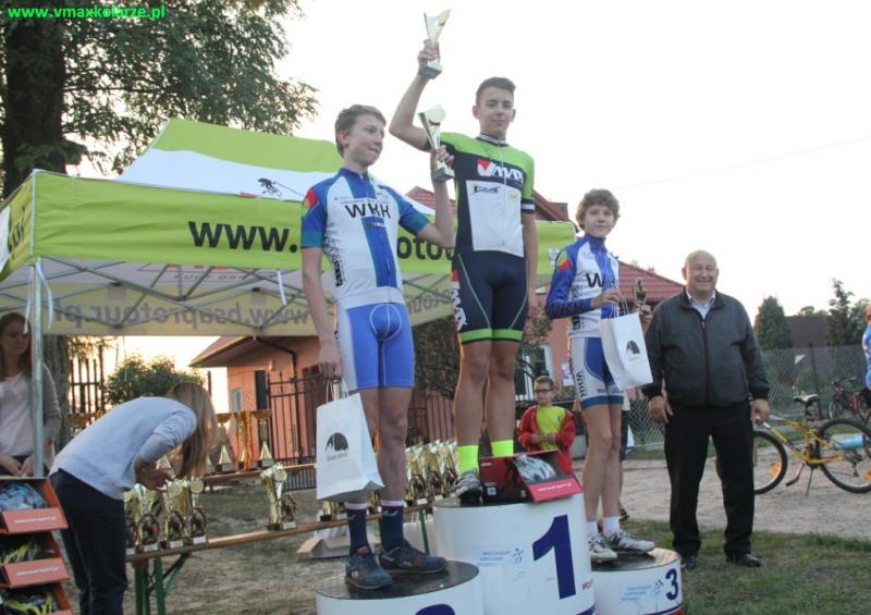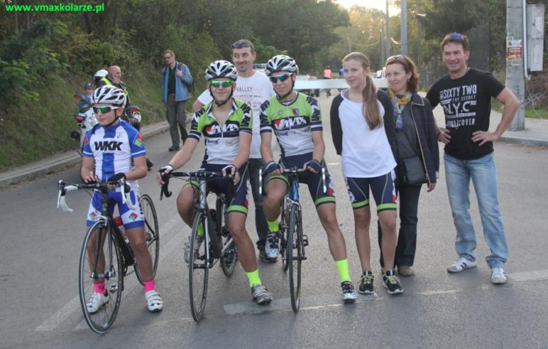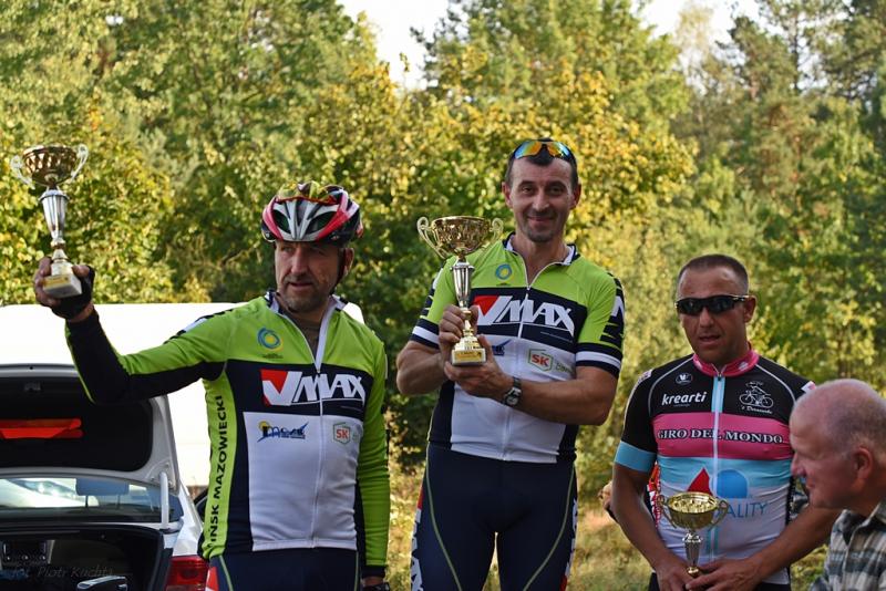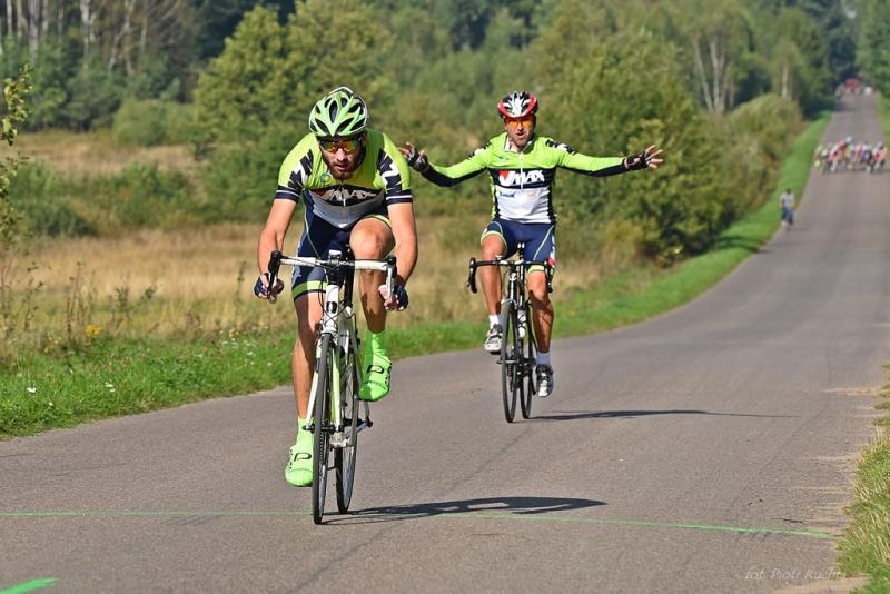 Ciężko sobie wymyślić bardziej udane zakończenie sezonu... Kolarze mińskiego V-MAXu sami długo pisali szczęśliwy scenariusz, a przysłowiową „kropkę nad i” postawili w ostatni weekend. Zaczęło się w sobotę 3. października 2015 r. na słynnej pętli chmielewskiej koło Mińska Mazowieckiego, gdzie stawili się czołowi, pełnoletni zawodnicy klubów „środkowego Mazowsza”. Jak zawsze impreza sprawnie zorganizowana przez Miejski Ośrodek Sportu i Rekreacji, Muzeum Ziemi Mińskiej i Klub Kolarski V-MAX przyciągnęła czołowe kluby kolarskie z naszego regionu. Już na starcie było wiadomo, że tego dnia apetyt na zwycięstwo będą mieli zawodnicy z Warszawskiego Klubu Kolarskiego oraz silni kolarze z „Cyklonu – Sulejówek”. Kolejny raz potwierdziła się zasada, że dzisiejsze kolarstwo szosowe to dyscyplina typowo drużynowa, a taką właśnie silną drużynę mają miejscowi zawodnicy trenera Jacka Tomkiewicza. Na łącznym dystansie 48 km ekipa V-MAXu od początku kontrolowała sytuację na trasie, neutralizując wszystkie poczynania rywali. Na kilka kilometrów przed metą rewelacyjny Mateusz Mikulski samotnie zaatakował, zyskując 40-sekundową przewagę. Chwilę potem doskoczył do niego drugi kolarz V-MAXu Tomek Czyżkowski. Stało się jasne, że złoto i srebro jest już w dobrych rękach, więc pozostał tylko finisz z dużego goniącego peletonu. Tutaj najszybszy był zawodnik z belgijskiego klubu „Giro Bellmondo” - Tomasz Woźniak.
