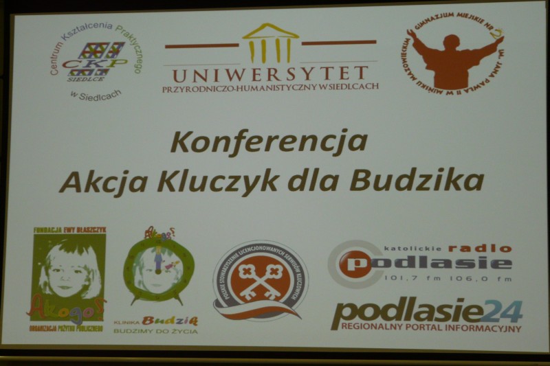 Konferencja odbyła się w głównej auli Wydziału Humanistycznego siedleckiej uczelni. Wzięli w niej udział: Ewa Błaszczyk – prezes Fundacji „A kogo?” i autorka pomysłu powstania Kliniki „Budzik”, Artur Barciś – aktor, ambasador akcji, Jan Łaczmański – pomysłodawca akcji „Kluczyk dla Budzika”, Zygmunt Bilewicz – prezes Polskiego Stowarzyszenia Licencjonowanych Serwisów Kluczowych, Ewa Błachnio – aktorka, Roman Roczeń – śpiewający poeta, gitarzysta.