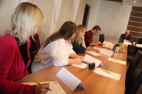 Dla uczestników konferencji, którą profesjonalnie poprowadziła Dorota Sugier (nauczycielka fizyki i chemii w GM2), zaśpiewali: Roman Roczeń, Ewa Błachnio i Artur Barciś. Była też okazja do zadawania gościom pytań, z której chętnie skorzystali uczniowie kl. 2e uczestniczącej w spotkaniu.